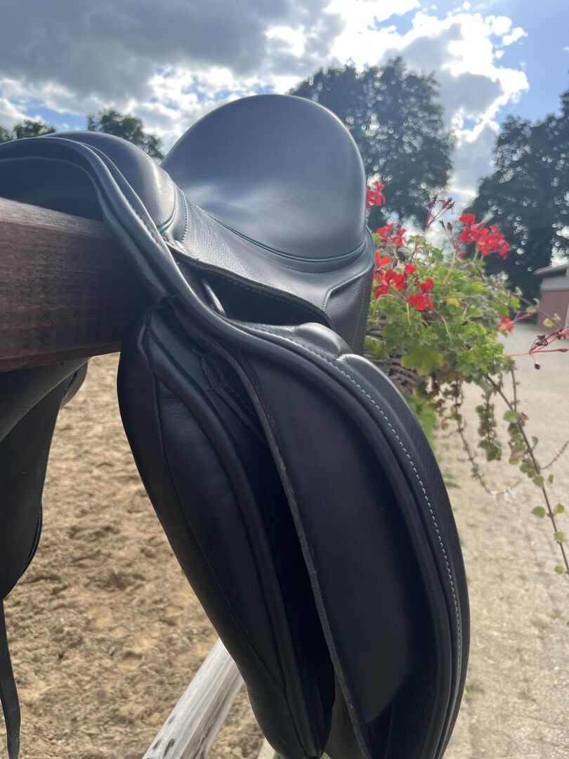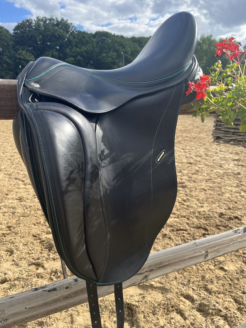Prachtig 18 inch Lockley Bliss of London zadel van Kalfsleer. Met 17 inch kussens en een medium boom. Hierdoor een ruime zit voor de ruiter en comfort voor het paard. Helaas is het zadel voor ons te groot, 18 inch en lange zweetbladen gaan niet lekker. Voor de ruiter rond de 165.