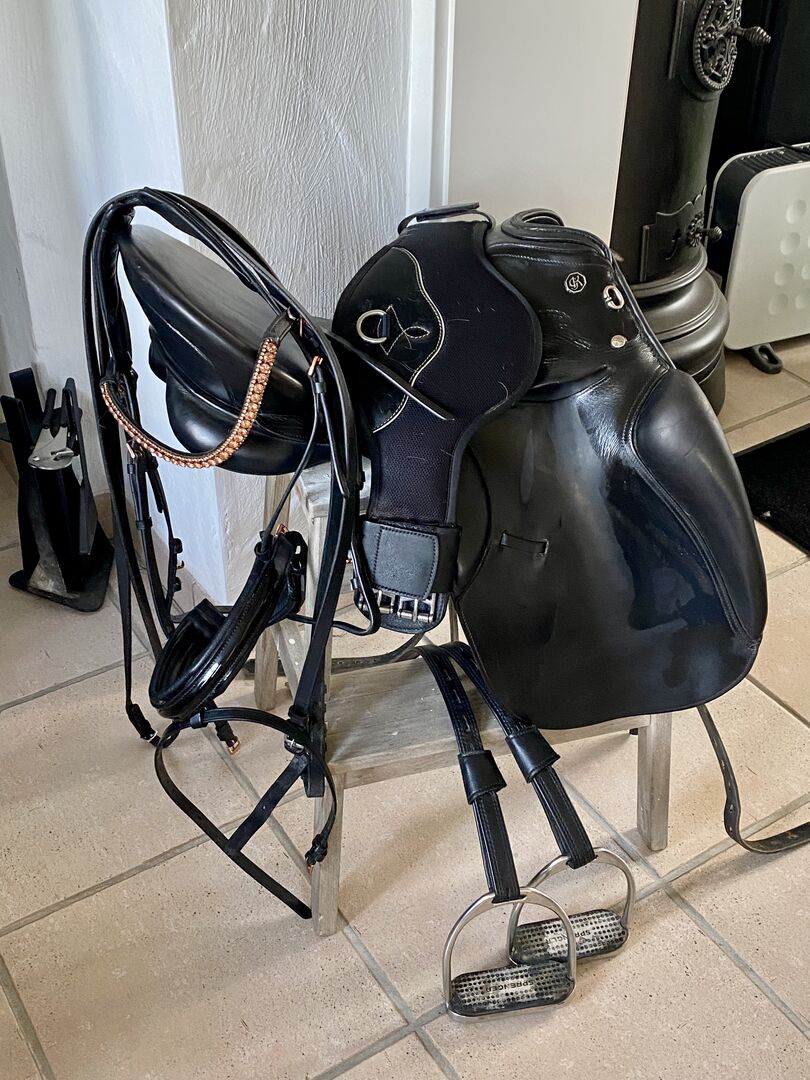Dressuur startset - Een super startersset aanbieden Pine Action 17 inch Tyson's anatomische snaffel roségoud Dressuur stijgbeugels DT Butterfly dressuursingel 55cm Alles super goed onderhouden, maar met schimmelhaar 🙂