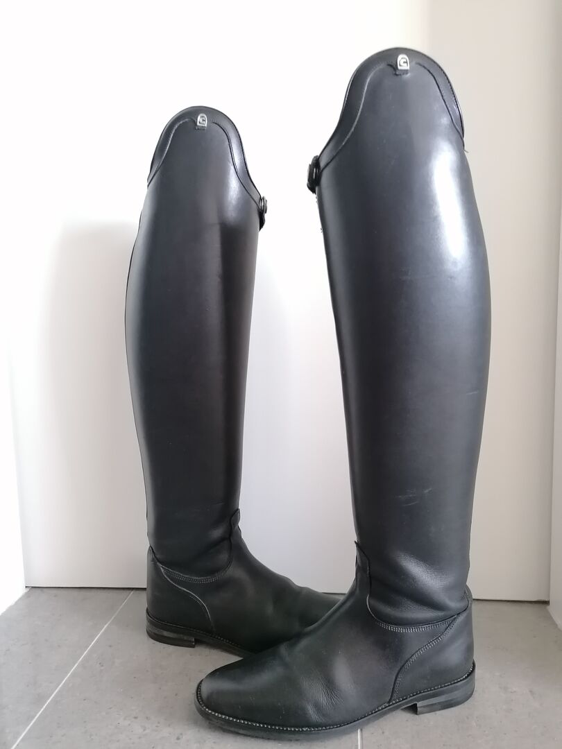 De laarzen hebben een hoge snit en zijn gemaakt van nauwsluitend leer, dat de benen bij het Dresa rijden mooi naar beneden legt, maar toch zijn de laarzen zeer comfortabel. Als ik ze kon blijven dragen, zouden ze me zeker nog vele jaren vergezellen.