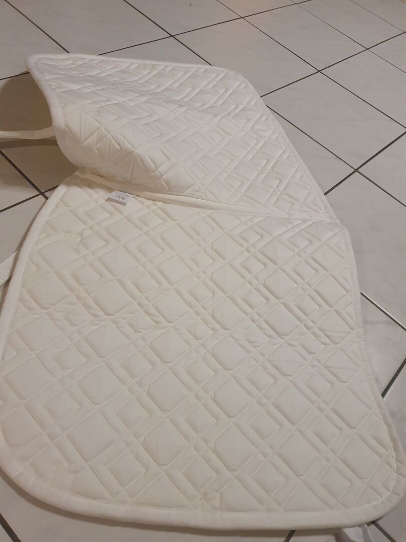 Houd er rekening mee dat alle items zijn opgeslagen in de stal en helaas vuil zijn geworden, vooral het zadeldek. Het heeft verschillende grijze vlekken. Daarom zeer gunstige prijs.