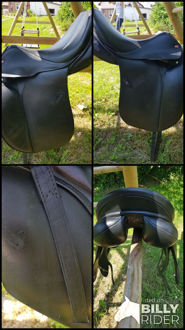Dressuurzadel - Ik verkoop mijn goed onderhouden zadel. Het heeft normale gebruikssporen en geen schade. De kleur is lichter op het been en het zitvlak, wat tijdens het rijden niet opvalt. Het stiksel op de zadelklep is van een lus waar vroeger de singelriem doorheen ging. Het is opgevuld met watten. Zetel 17,5 en medium kamer. Volgens de zadelmaker soortgelijke constructie als Stübben Skandika.