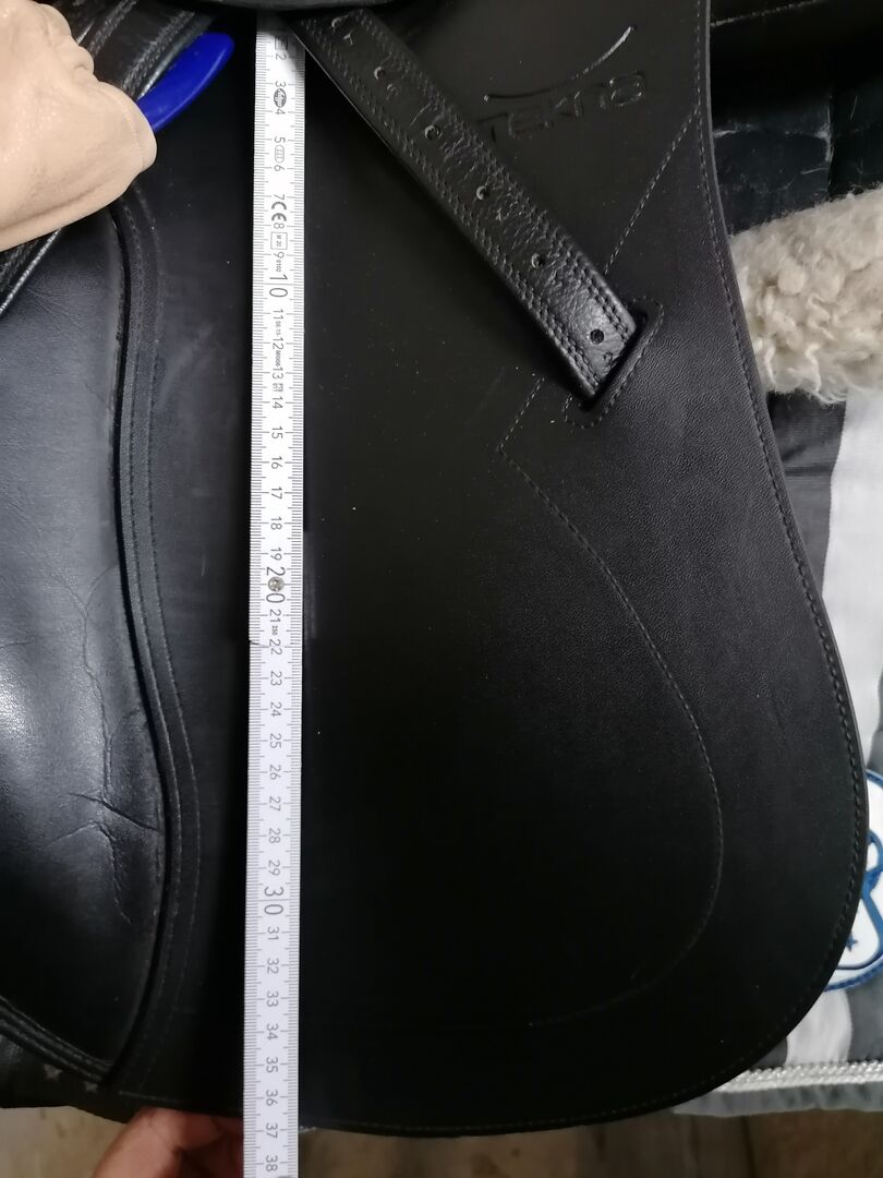 Dressuurzadel - 17 inch, diepe zit, verstelbare pommels, verwisselbare slokdarmplaat, zeer goed onderhouden, zelden gebruikt,