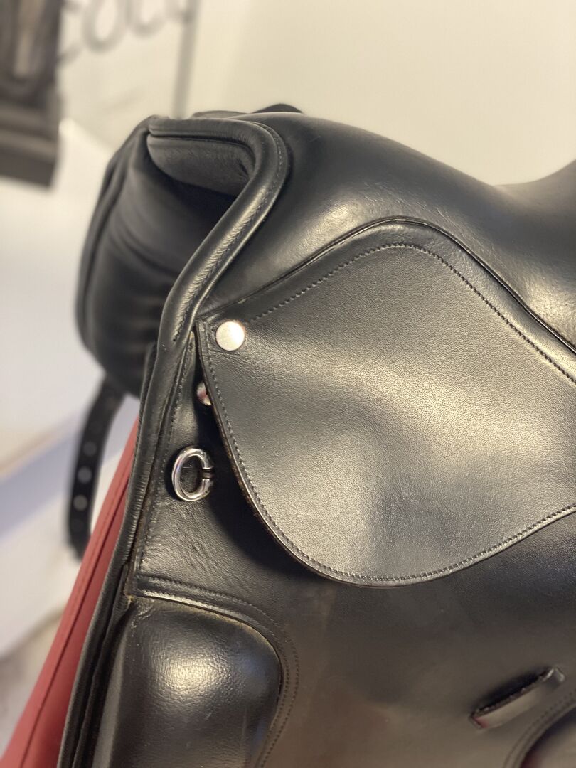 Dressuurzadel 17" - Ik moet mijn dressuurzadel met een bezwaard hart wegdoen. Helaas past hij mijn ruin niet meer. Ik heb hem zelf gekocht via Ebay Classifieds. Het heeft een 17" zitting en is zeer comfortabel. Door de kussentjes aan de achterkant heeft het zich ook perfect aangepast aan de rug van het paard. Hij heeft een mooi breed wervelkanaal en moet een middelgrote kamer hebben. Door zijn grote pommels zat het been echt goed vast aan het paard en gaf het de ruiter optimale steun. Het heeft een iets korter contactoppervlak en is ook zeer geschikt voor paarden met een korte rug. Natuurlijk is het gebruikt en vertoont het enige sporen van gebruik. Verzending is uiteraard mogelijk tegen een meerprijs. Schrijf me als u vragen hebt. Gegroet