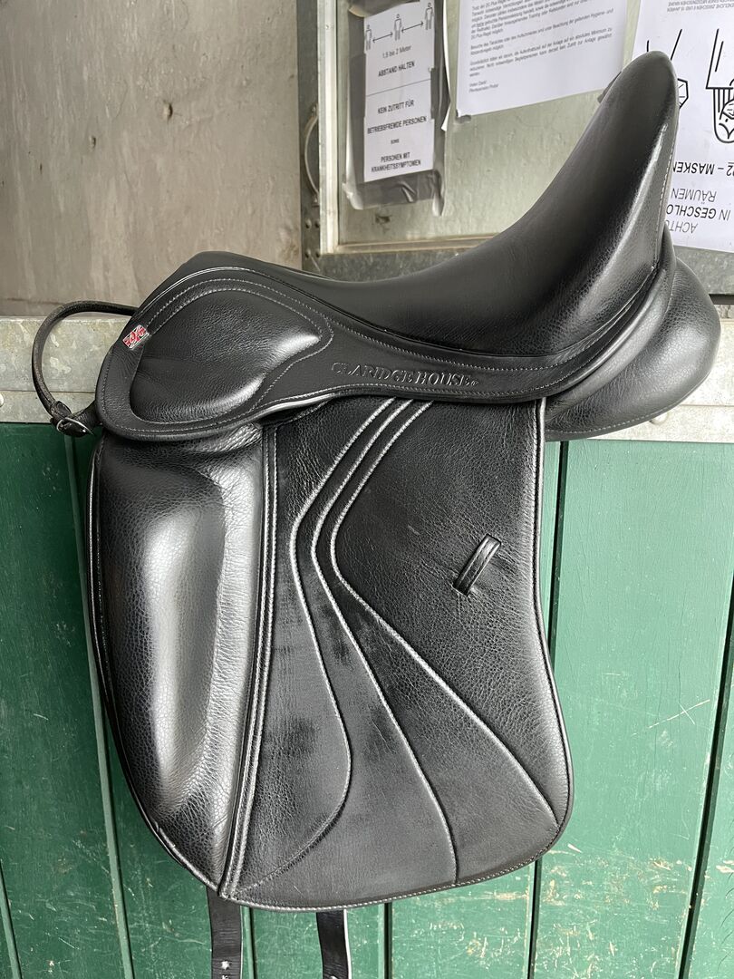 Dressuurzadel 17,5" KW 32 of 34 Soft Bloc ClaridgeHouse - Hallo allemaal, Ik verkoop hier mijn zeer zelden gebruikte dressuurzadel. Helaas was mijn paard al enige tijd zo beperkt dat ik het zadel uiteindelijk maar een half jaar heb gebruikt en het sindsdien afgedekt bij ons thuis hangt. Hij is dan ook in zeer goede staat en heeft alleen minimale wrijving ter hoogte van de stijgbeugelriemen, die alleen te zien is als het licht dienovereenkomstig valt. Voor het overige is hij regelmatig verzorgd en schoongemaakt en is er nooit in de regen mee gereden en heeft hij altijd overdekt in een droge kast aan een stang gehangen om de zadelpanelen niet te pletten.