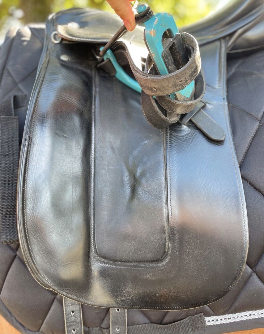 Ik bied mijn Kieffer dressuurzadel aan met een afgesneden achterkamer, wat ideaal is voor paarden met veel schoft!