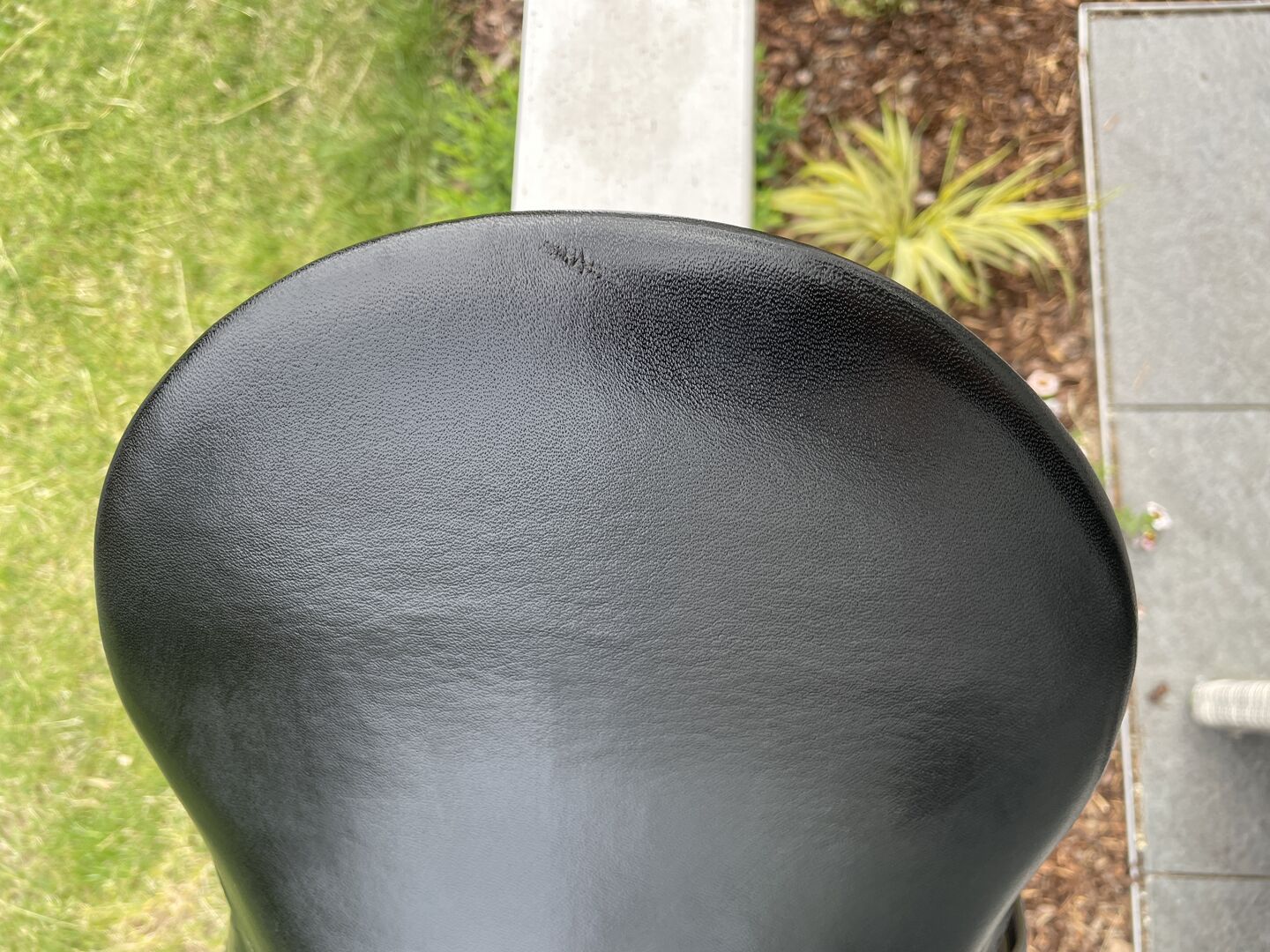 Het zadel heeft normale gebruikssporen, maar helaas zit er een klein smetje op het rugmembraan (zie foto's).