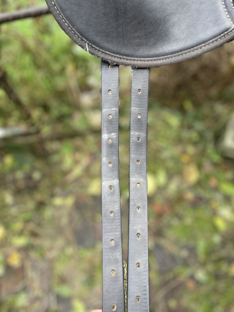 Dressuurzadel 26/28 binnenbeenlengte, 17 inch - Hallo Ik verkoop mijn comfortabele dressuurzadel omdat ik wil overstappen op boomloze zadels. Het is waarschijnlijk van Thorrowgood. Helaas zie ik geen merknaam, maar op de sticker onder de zadelklep staat Thorrowgood. Het heeft een slokdarm van 26 of 28 mm, de slokdarmplaat kan niet worden veranderd (mogelijk door een zadelmaker, maar geen garantie). Het materiaal is net als Wintec en ook even comfortabel. De singelbanden zijn nog in goede staat. Flexiblocks worden ook bijgeleverd om de pommels te verstellen. Het zadel heeft een kleine beschadiging aan de achterste pommel, maar dit beperkt het gebruik niet.