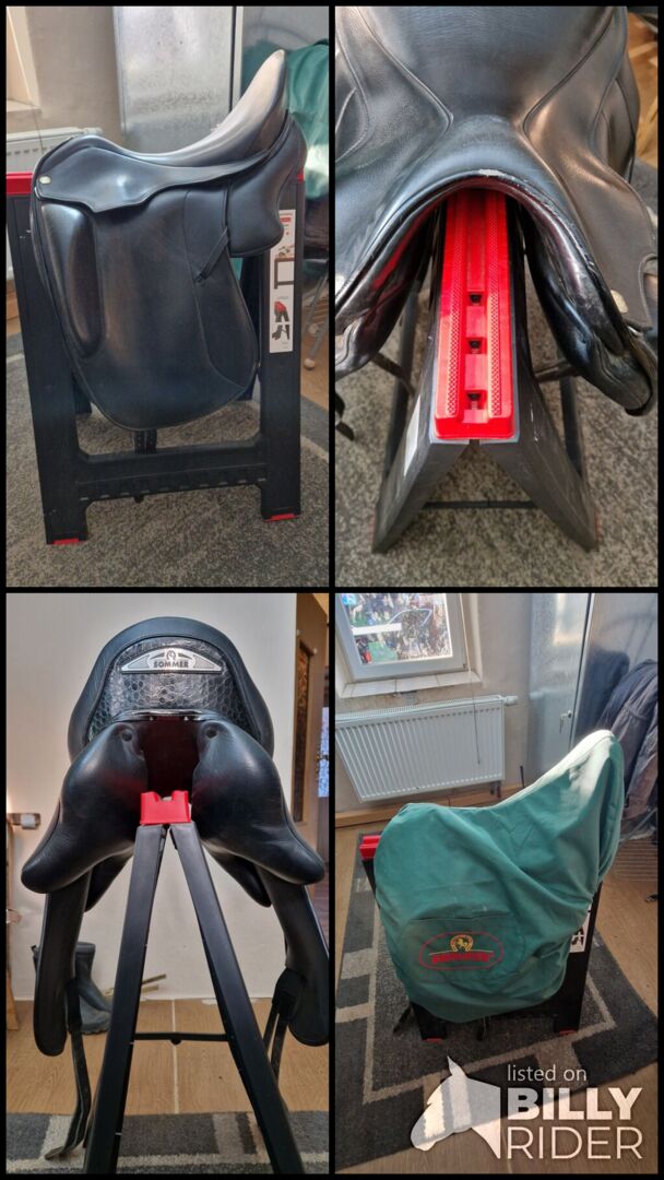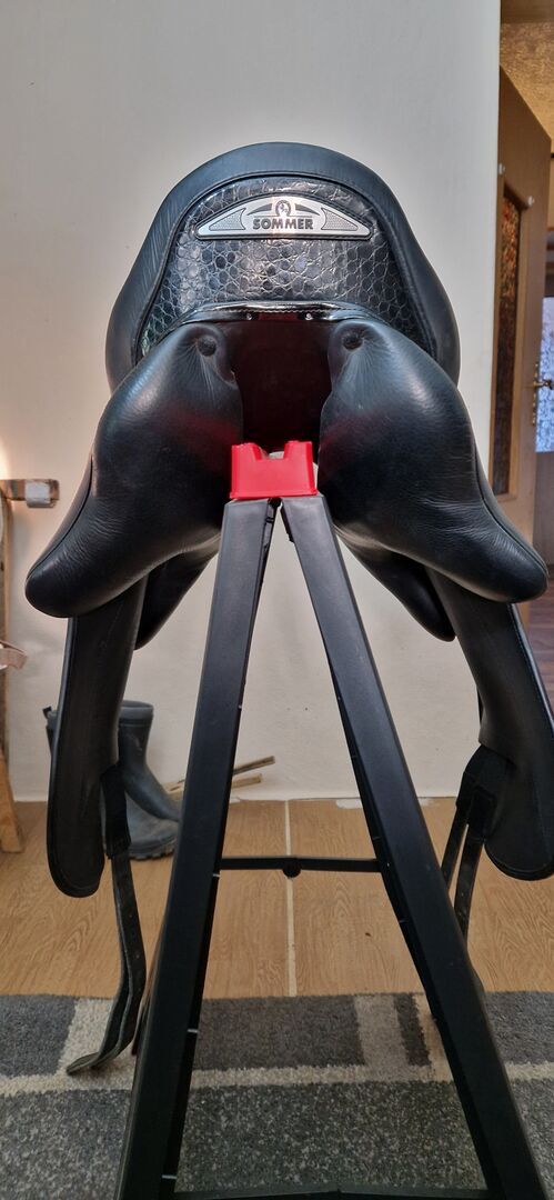 Dressuurzadel - Prachtig dressuurzadel van Sommer. Het past ons paard niet meer, dus we willen het graag doorgeven. Het heeft 17,5 inch en de kamerbreedte is 31,5. Het heeft een paar gebruikssporen. Het zit erg comfortabel en het kleine krokodillendetail is een bijzonder ontwerp.