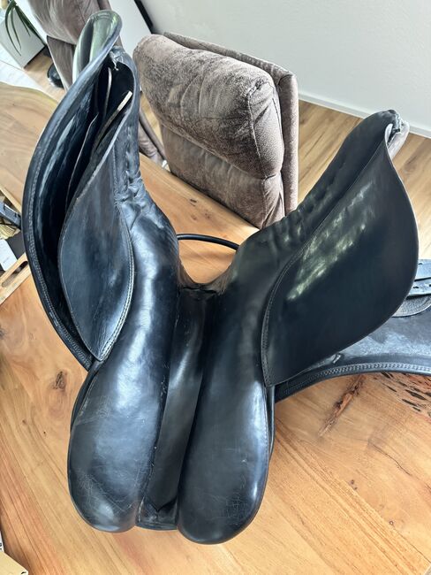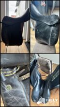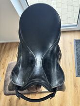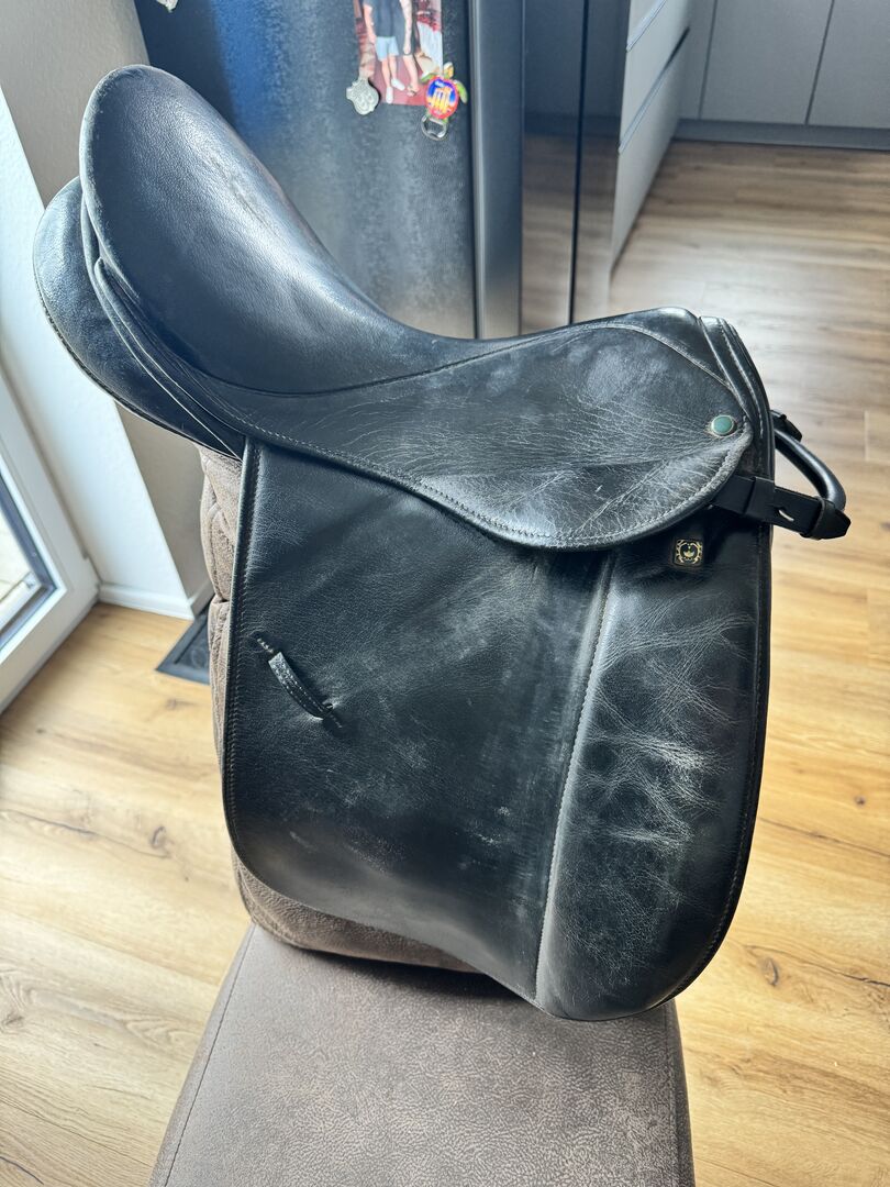Dressuurzadel - Ik verkoop een goed gebruikt dressuurzadel. Helaas kan ik er niet veel over zeggen aangezien het zadel bij het paard lag toen ik het overnam en perfect paste. Het zadel lag op een Ierse volbloed merrie met een stokmaat van 1.55 cm en een tenger, sportief figuur.