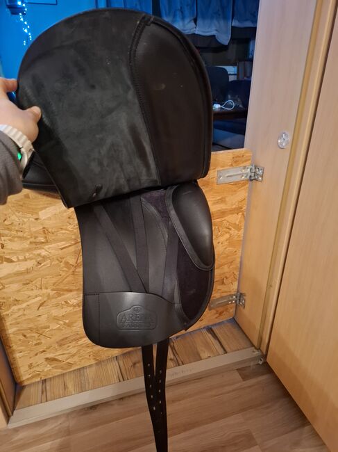 Dressuurzadel - Ik verkoop mijn dressuurzadel dat ik nieuw gekocht heb op 23/06/2025, het is pas 5 maanden in gebruik en in die 5 maanden heb ik gemerkt dat mijn merrie niet overweg kan met het zadel. Het zadel is van het merk Arena zie foto. Het zadel heeft een slokdarmplaatje in het wit aan de binnenkant en een zwart slokdarmplaatje heb ik nog aan het zadel, het witte slokdarmplaatje is extra breed en het zwarte heeft de maat M zadelmaat is 17,5 het zadel heeft de lengte 44 cm. Factuur en alle informatie over het zadel staat op de factuur die ik als foto heb bijgevoegd. Geen garantie en geen retouren