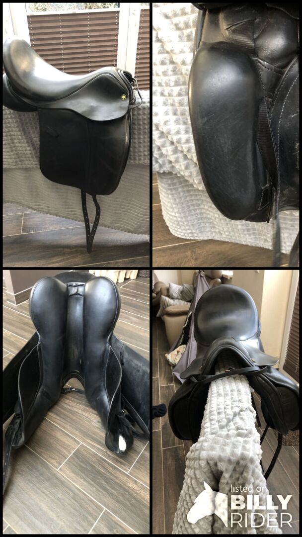 Dressuurzadel, Ainsley, 17,5 inch - Ik bied een zeer comfortabel dressuurzadel aan. Ik vind dat het lekker laag zit en de knierollen begrenzen het been heel goed, waardoor je automatisch een mooie zit krijgt. De zit is niet te glad.