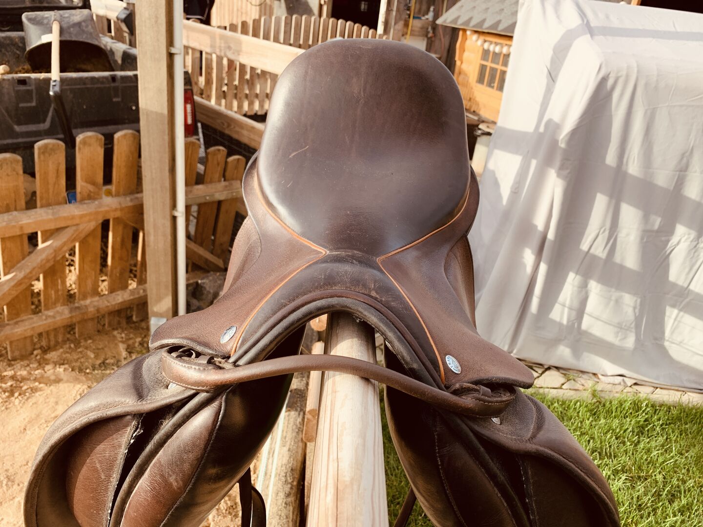 Het zadel is nieuw gekocht voor een jong paard, dat zoals verwacht meer veranderd is dan het zadel toelaat. Het paard werd langzaam en voorzichtig ingereden toen het 3,5 jaar oud was, het zadel paste iets minder dan een jaar en werd dus niet veel gebruikt. Daarna lieten we het jonge paard weer in de wei en probeerden het opnieuw met een zadelmaker te passen, maar dat was helaas niet mogelijk.