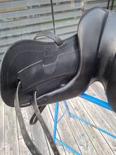 Dressuurzadel Childeric DAC DGP 17", Swarovski, lichtgekleurde doorstiksels - Childeric dressuurzadel DAC DGP 17" in zwart met Swarovski-kristallen op de pommel en lichtgekleurde sierstiksels