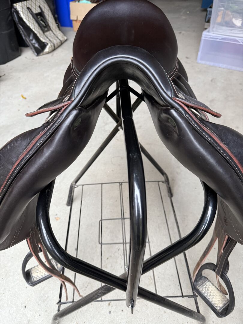 Dressuurzadel Devaucoux Korrika M 18" - Prachtig dressuurzadel van Devaucoux in diepbruin met nieuwe leren singel, ook origineel van Devaucoux. Het zadel is in zeer goede staat, ik heb het nauwelijks gebruikt. Ik ben meer een cross-country ruiter. Ik verkoop ook graag mijn dressuurzadeldekjes van LeMieux, evenals de zadelstandaard.