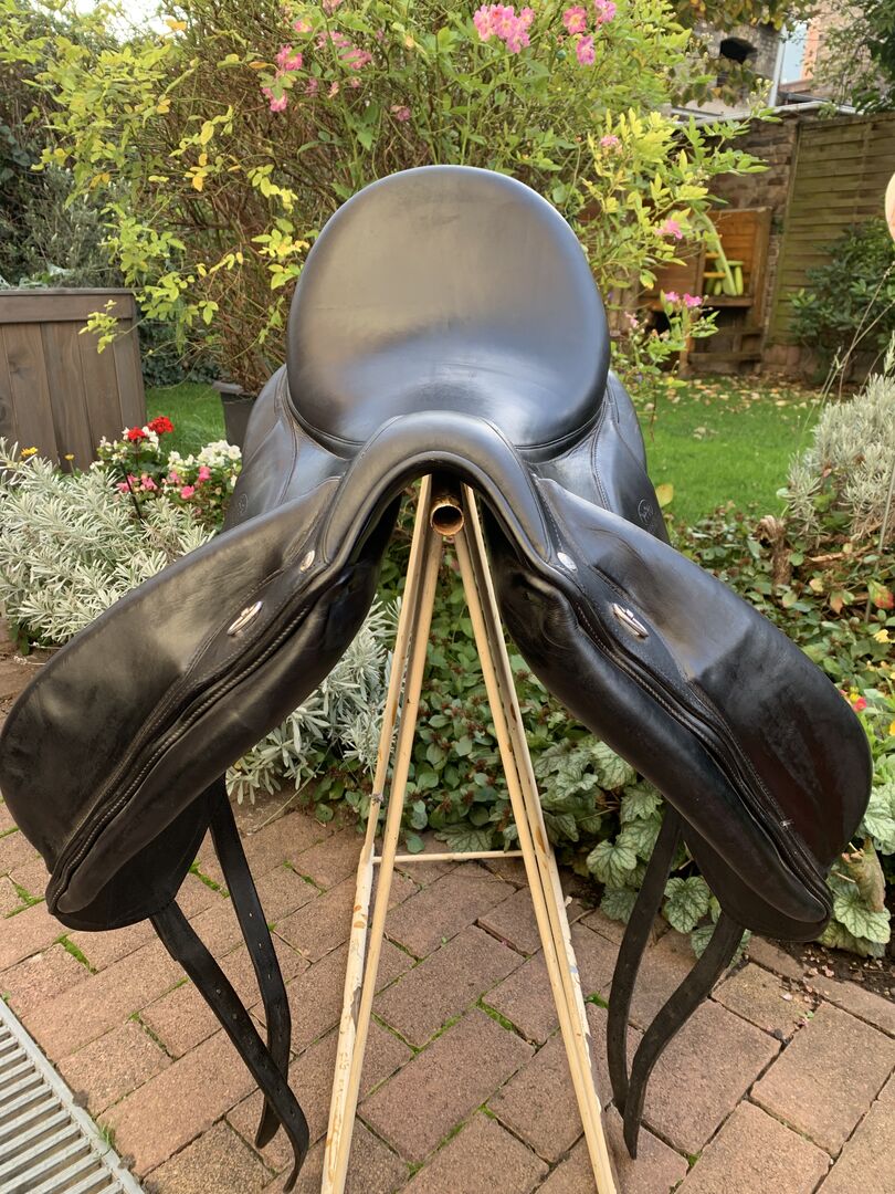 Dressuurzadel Devoucoux Makila Lab 17,5" - Ik verkoop ons mono flap dressuurzadel van het merk Devoucoux, type Makila Lab. De zit is 17,5" (bij andere merken meer als 17") Het zadel is bouwjaar 2021, zeer goed onderhouden, leer in topconditie, NP 3999€ De afmetingen volgens het zadelblad zijn Arcade Normaal 17,5 2AA FG D3D 4.0 3-5 Het zadel lag op een vrij smal paard. Het leder is op 2 plaatsen op het zitvlak licht geruwd (zie foto's). Dit is heel oppervlakkig en licht en is alleen te zien afhankelijk van het licht. Verzending is mogelijk, ik raad een extra transportverzekering aan tot 2500€ voor 6,99€. Het zadel kan te allen tijde worden meegenomen voor montage tegen aanbetaling van de volledige aankoopprijs. Als het zadel in perfecte staat wordt geretourneerd, wordt de borg uiteraard terugbetaald. Aangezien ik ook vaak in 27283 Verden ben, kan het zadel eventueel in overleg daar geleend worden voor het passen. Anders als particuliere verkoop geen garantie of retour