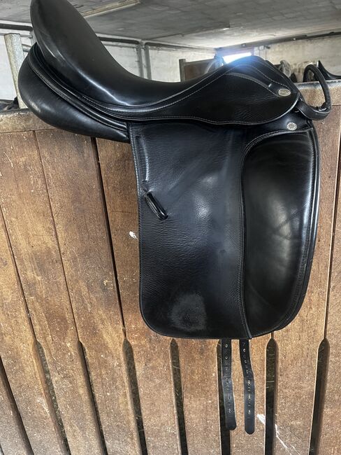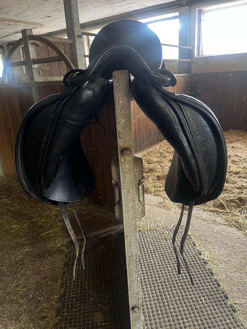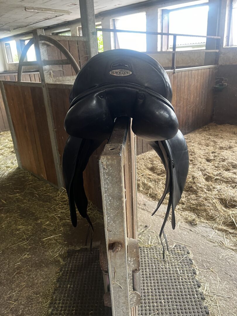 Dressuurzadel Emilio - Ik verkoop een Emilio dressuurzadel in goede staat. Dit zadel is gemaakt door Prestige voor Euroriding. Het zadel heeft klittenband panelen en gedupliceerd leer. Het zadel is pas opgevuld.
