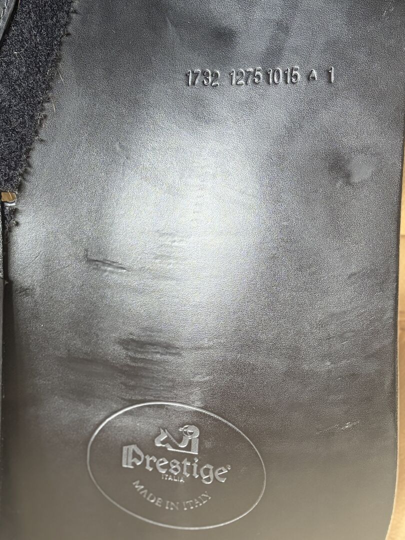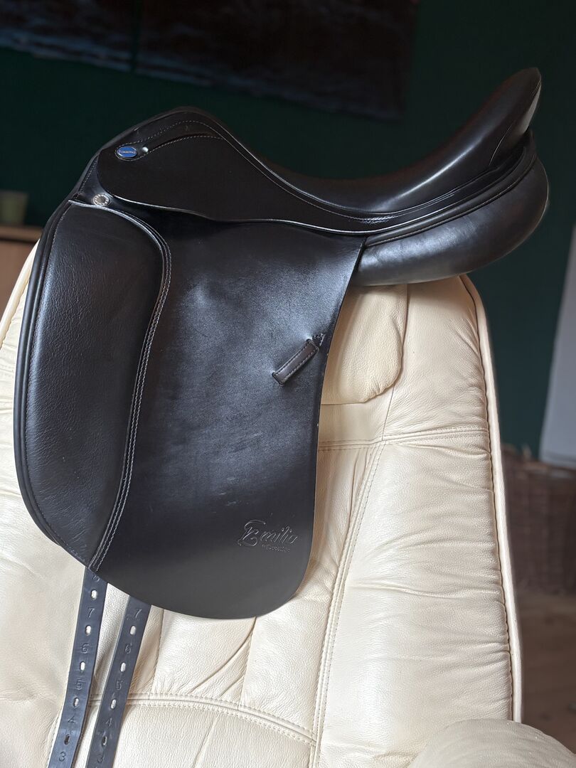 Dressuurzadel Emilio, Euroriding by Prestige, 17 inch - Ik verkoop mijn dressuurzadel van Euroriding by Prestige in klassiek zwart. Het zadel is regelmatig gecontroleerd door de zadelmaker en goed verzorgd.