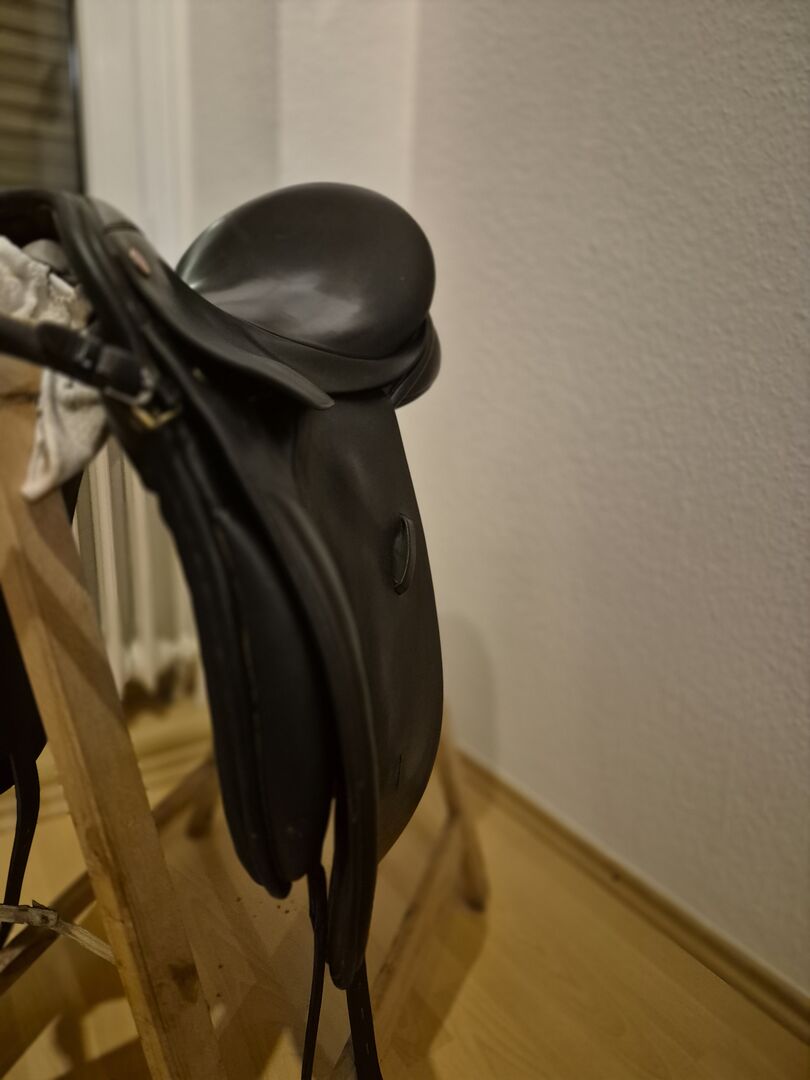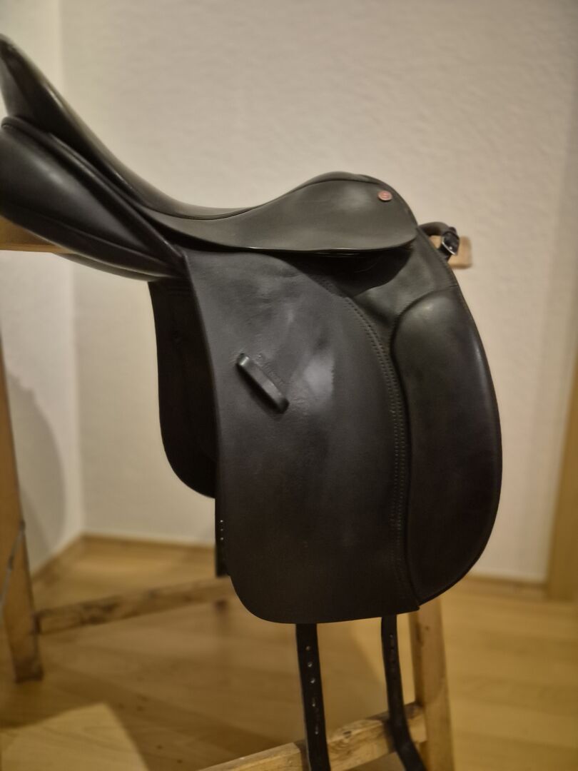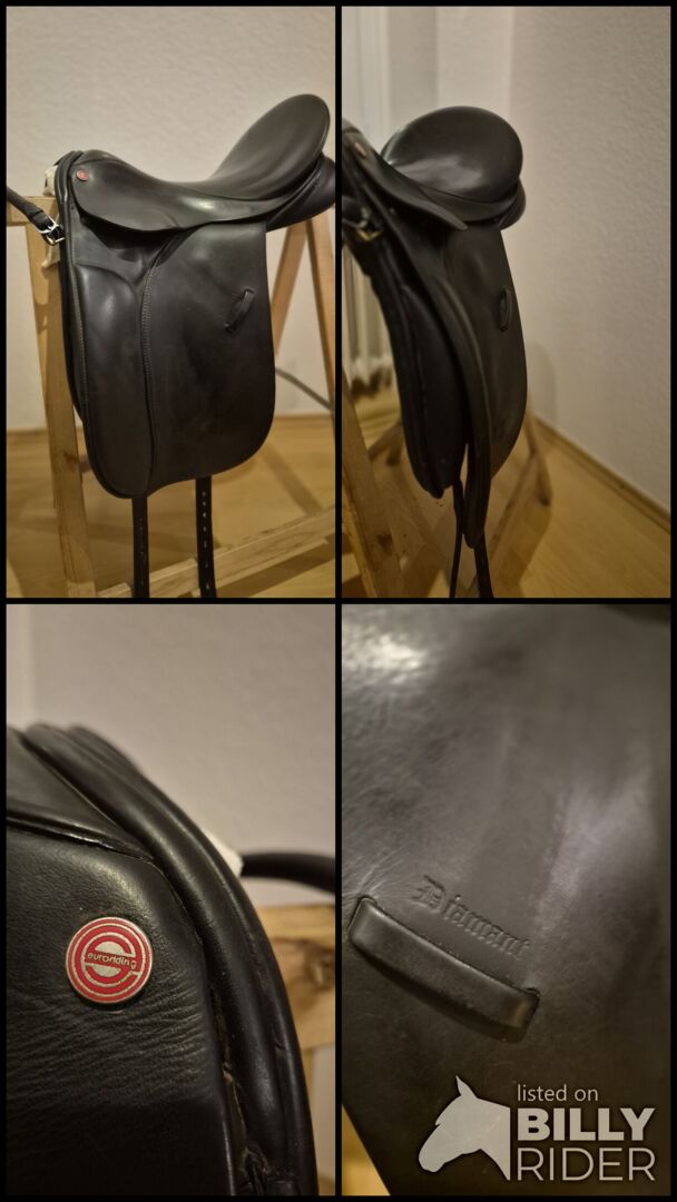 Te koop aangeboden een Euroriding Diamant dressuurzadel. Het zadel heeft een Spring Tree met flexibele contactpunten, wat zorgt voor een goede aanpassing aan de rug van het paard.
