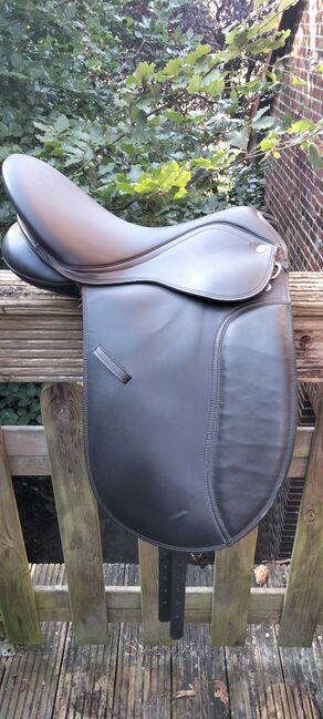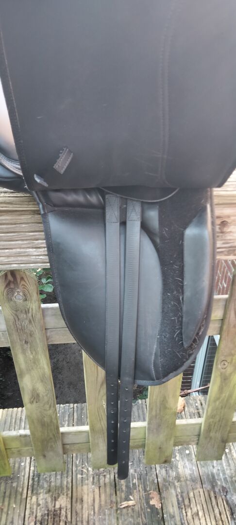 Dressuurzadel Harrys Horse 16,5 - Ik verkoop een 16,5 inch dressuurzadel van Harrys Horse met verwisselbare slokdarmplaat, maar de witte wintec slokdarmplaat zit er al jaren op en ik kan persoonlijk geen andere slokdarmplaat laten monteren omdat het zadel zo is ingezakt. Het zou dus iets zijn voor iets bredere paarden/pony's of je moet het beetje bij beetje smaller maken.