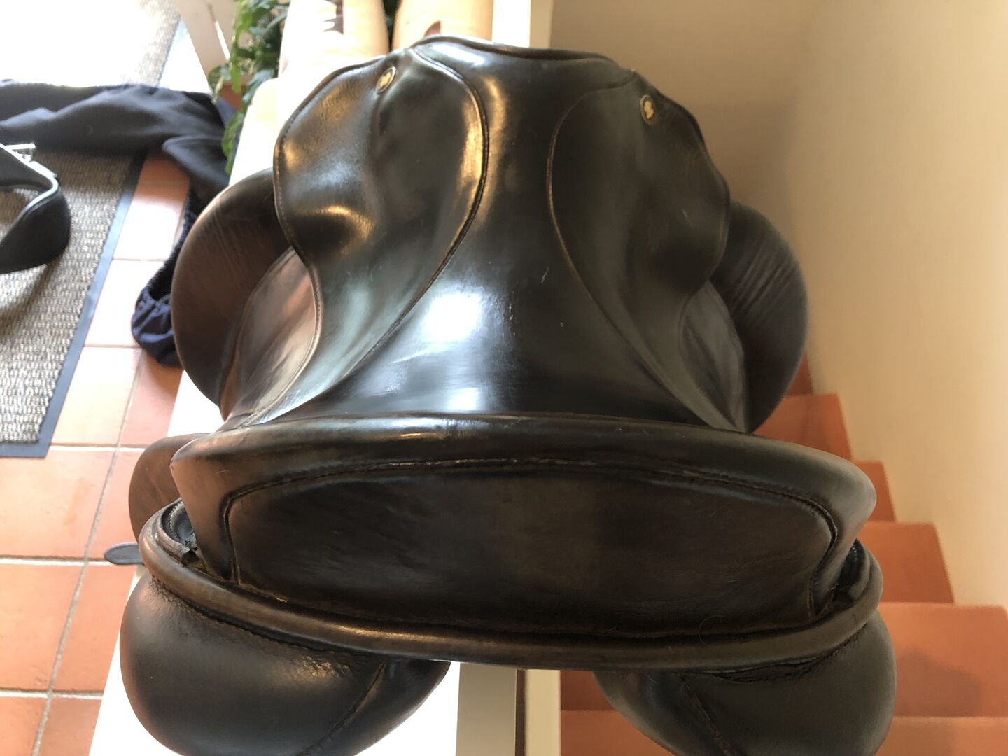 Dressuurzadel, Hennig, 17", topconditie - Ik bied een geweldig gebruikt Hennig dressuurzadel aan uit 2001 met een breed wervelkanaal. Het donkerbruine zadel is ondanks zijn leeftijd in topconditie en heeft geen krassen of vlekken! Alleen de singelstoten moeten binnenkort vervangen worden. Het was tot voor kort erg populair omdat het extreem comfortabel is en een hoog zitcomfort biedt. Helaas past het onze jonge merrie niet meer, dus moeten we het verkopen.