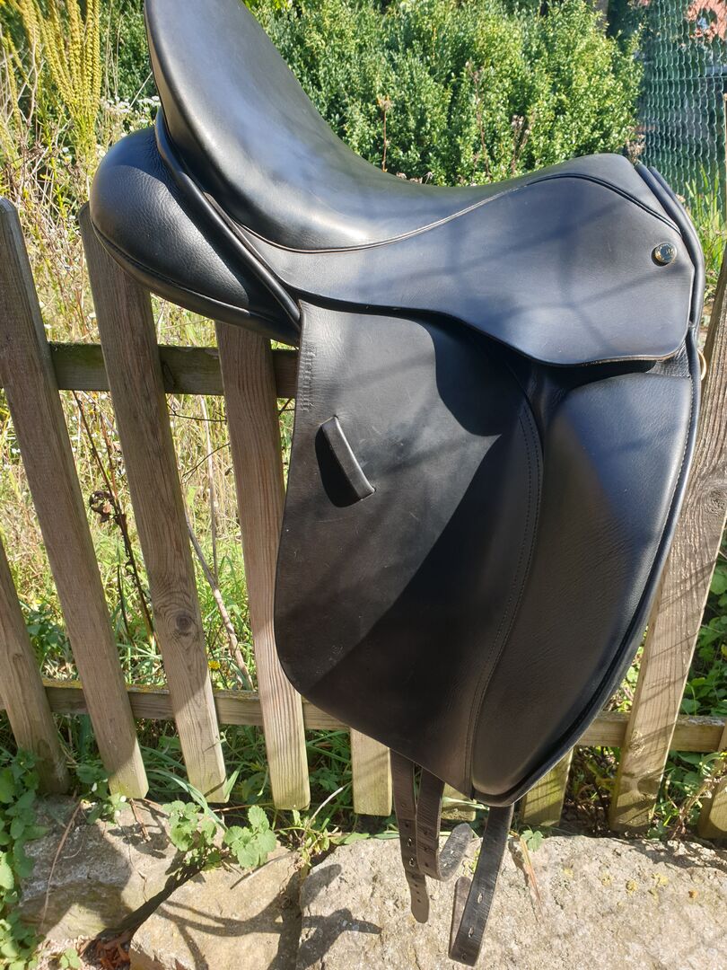 Dressuurzadel-Hintermayer Anatomic 17" - Bied een gebruikt dressuurzadel aan, in goede staat. -> Hintermayer Anatomic 17" Fit 3 1/2. Het is zeer geschikt voor het barokke type paard. En kan zonder problemen worden aangepast. Natuurlijk heeft hij wat gebruikssporen, maar dat zijn kleine oneffenheden en niet van invloed op de veiligheid. Aan de rechterkant, is de singelriem doorvoer losgekomen. Maar dit stoort me op geen enkele manier. Ik wilde het alleen even zeggen.