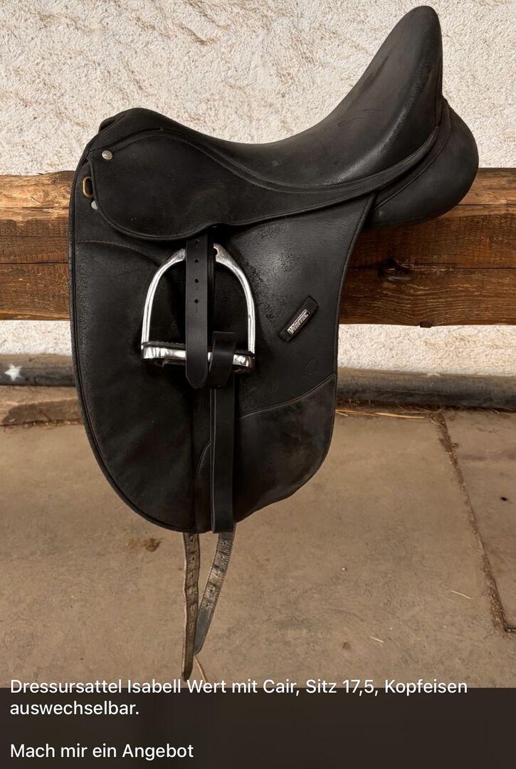 Dressuurzadel Isabelle Werth - Ik verkoop twee gebruikte dressuurzadels die ik twee jaar geleden heb gekocht. Een van de zadels heeft tot afgelopen november op de rug van het paard gelegen, het andere zadel heeft alleen op een paard gelegen om te passen. Beide zadels hebben een zitting van 17,5 inch, één zadel heeft een blauw slokdarmplaatje. De andere zou ik nog eens moeten nakijken.