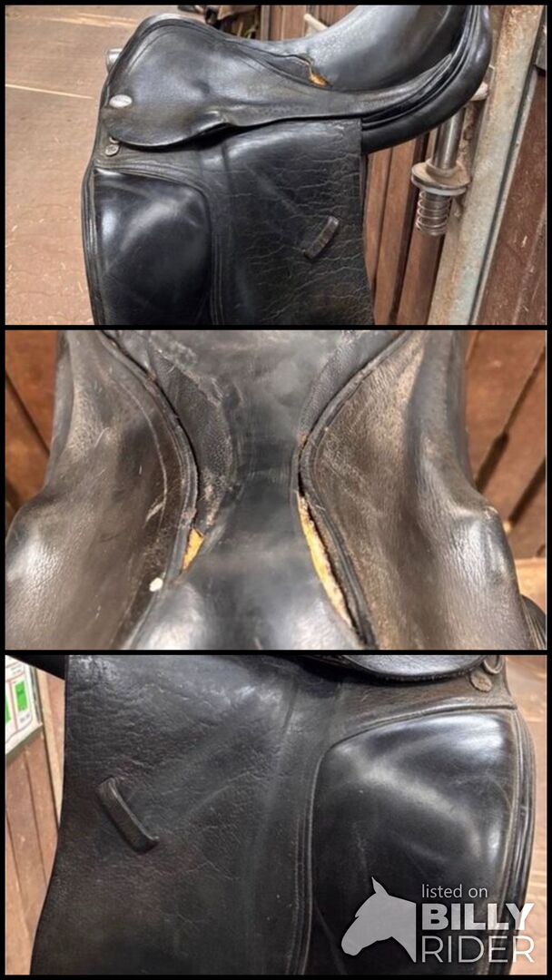 Dressuurzadel Jaguar 17 inch - Ik bied mijn Jaguar dressuurzadel in 17 inch aan. Je kunt aan de foto's zien dat het zadel een paar gebreken heeft. Het zadel kan gerepareerd worden door een bekwame zadelmaker, het zadel is jarenlang een metgezel geweest en is ongelooflijk comfortabel. Reparatie wordt geschat op 150/200€. Het zadel kan op elk paard worden gelegd, het lag op een pony en onlangs op een 1.70 paard met veel schoft. Wordt verkocht omdat ik het niet meer gebruik en het te goed is om te laten liggen en stof te verzamelen. Ik sta open voor aanbiedingen.