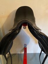 Dressuurzadel Josef Hildmann 17,5 inch zeer goede staat - Dressuurzadel met comfortabele zit, twee verwisselbare klittenbandblokken in verschillende maten voor aanpassing aan het been van de ruiter worden meegeleverd, zeer goede staat, weinig gebruikt, slokdarmplaat koud verstelbaar, nu 32-33, maar makkelijk koud aan te passen.
