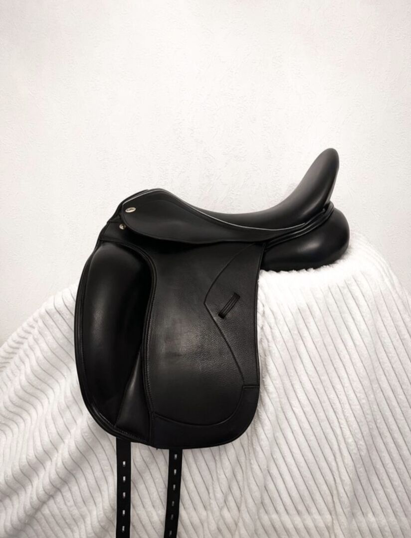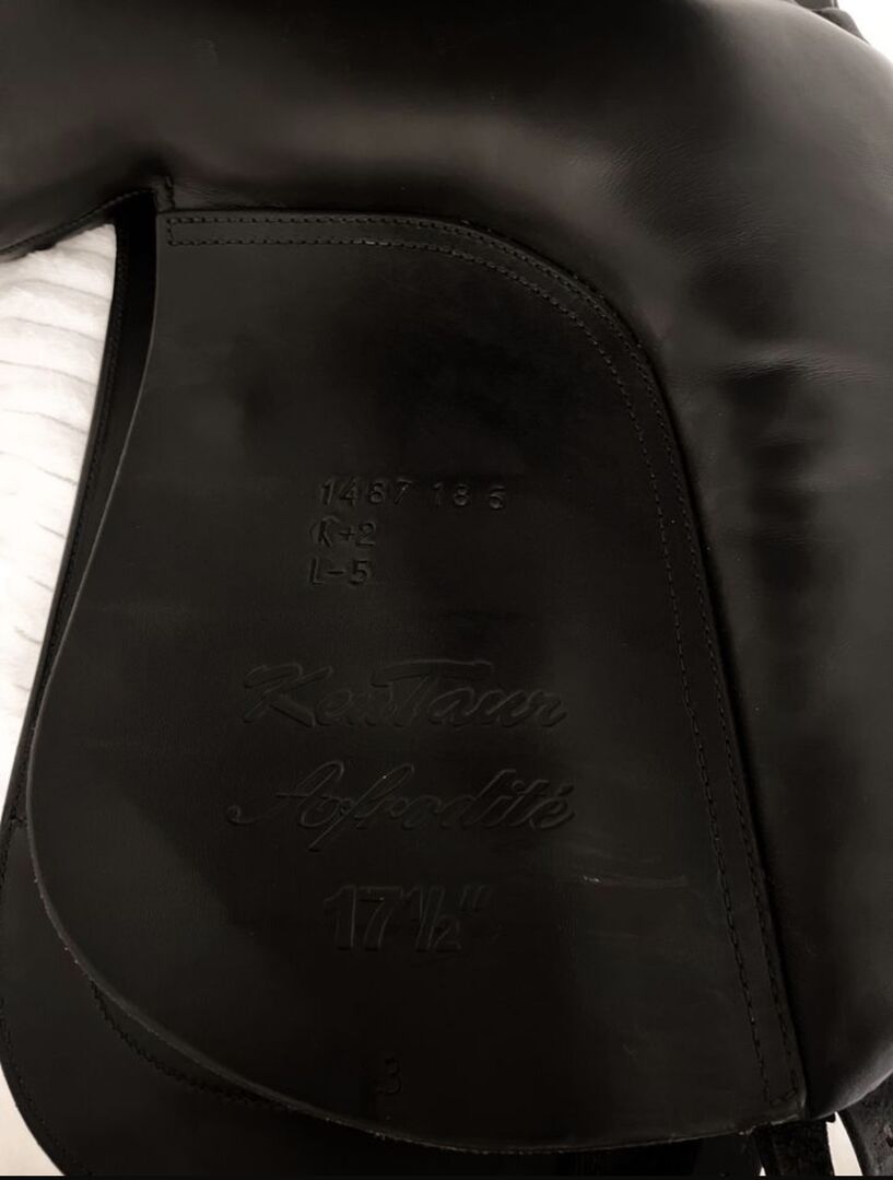 Dressuurzadel Kentaur Afrodite - Ik verkoop een prachtig en uiterst comfortabel dressuurzadel. Het zadel zit als een bank, geeft een goede zit zonder te knellen. Bijzonder zijn de witte sierstiksels. Het is in zeer goede, verzorgde staat, zoals te zien is op de foto's.