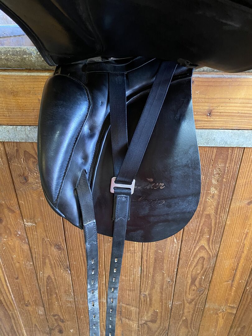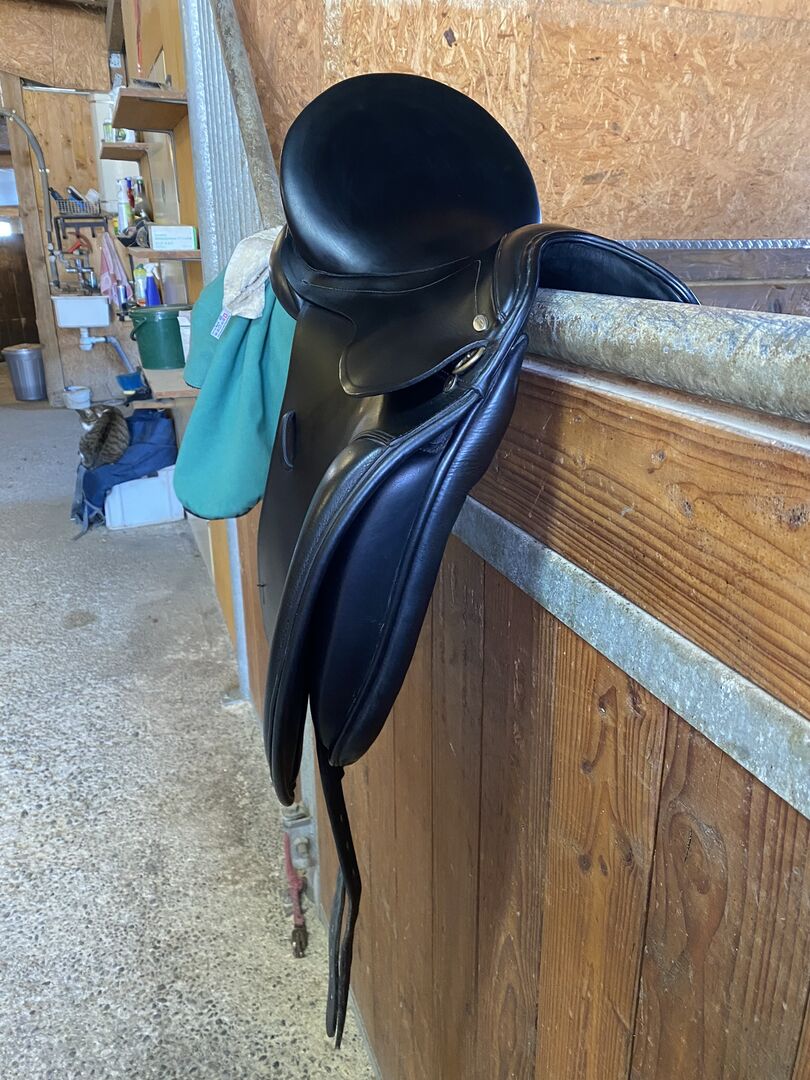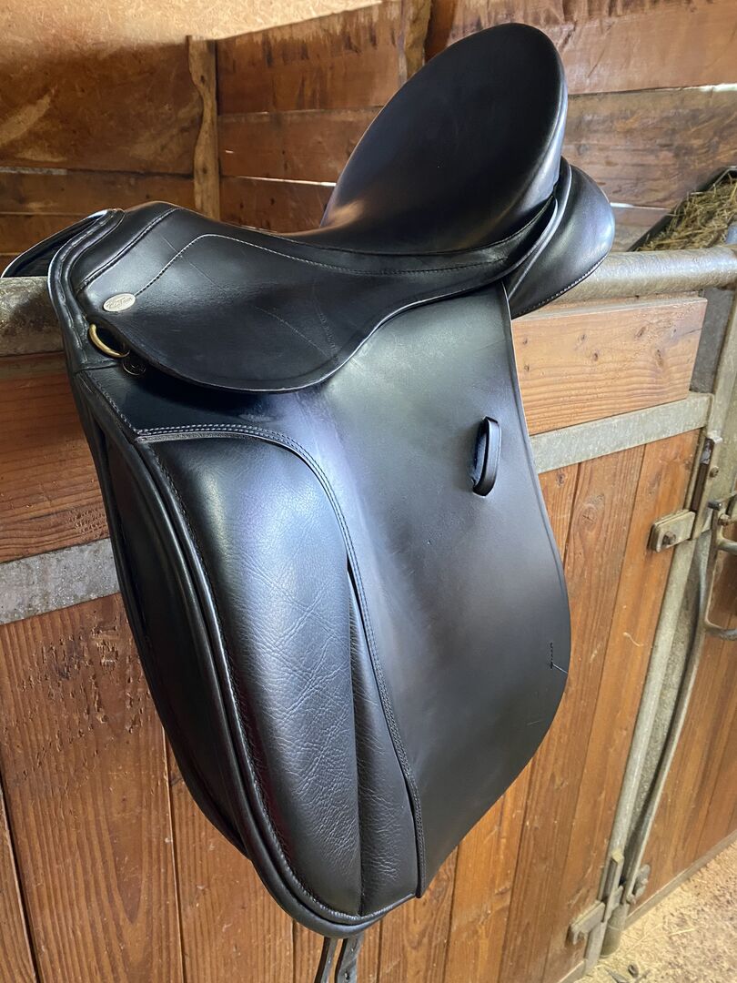 Dressuurzadel Kentaur Kalypso 17" - Verkoop gebruikt dressuurzadel van Kentaur in zeer goede staat. Het model is een Kalypso met 17". Contactvlak volgens foto.