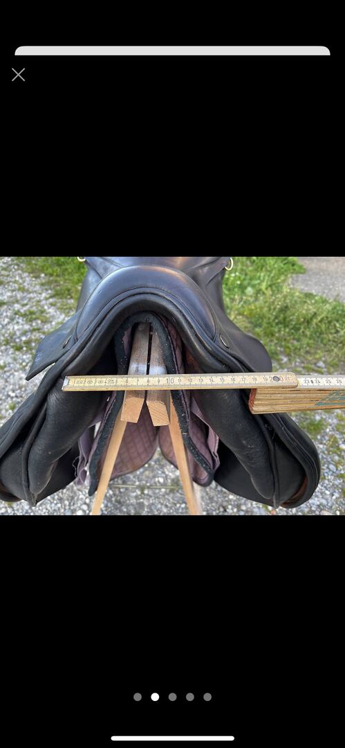 Dressuurzadel La Belle - Te koop dressuurzadel La Belle Is zwart gekleurd door vorige eigenaar Zeer fijn comfortabel zadel Is nagekeken en verbreed door zadelmaker naar bovenstaande maat.