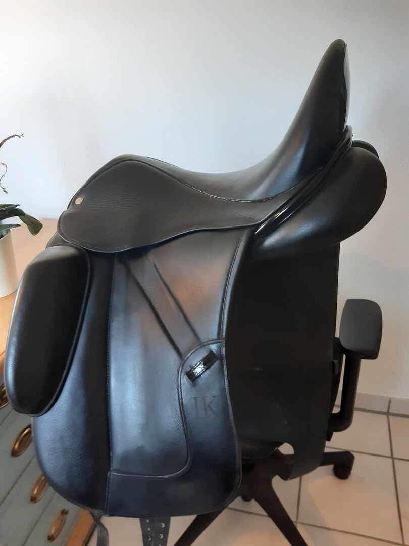 Dressuurzadel Luisa Koehne - Te koop als nieuw dressuurzadel bon Luisa Koehne. Mono flap met aangehechte knierollen --> verstelbare en verwisselbare knierollen --> Inclusief twee verschillende maten knierollen