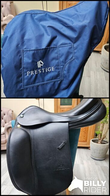 Dressuurzadel Modena van Prestige (32 KW, 18'') - Ik heb het zadel in oktober 2025 gekocht en slechts 5 keer gebruikt. Nieuwprijs was € 2390, factuur is aanwezig. Zadelhoes ook aanwezig.