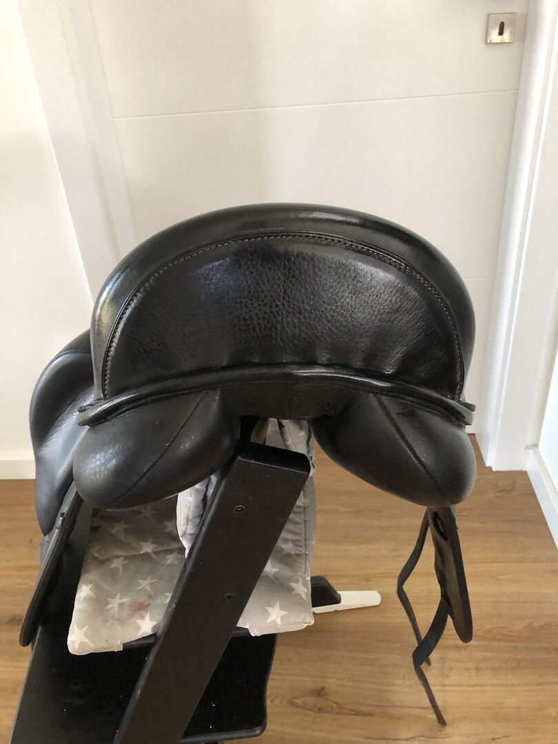 Dressuurzadel Monoblatt SeaBis zwart 17 - Ik verkoop mijn zeer goed bewaarde en zelden gebruikte SeaBis mono flap dressuurzadel.