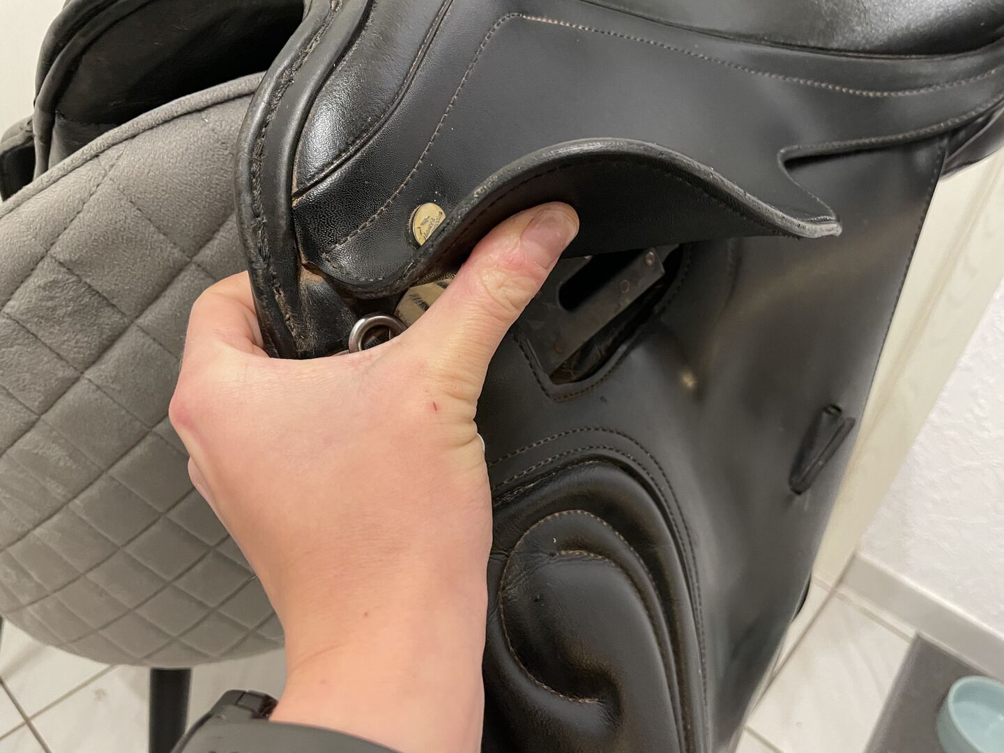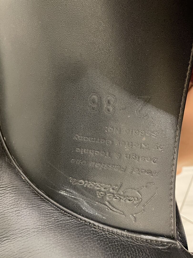 Dressuurzadel, Paard en Passie van Kiefer, KW 37, Franse panelen - Ik bied mijn dressuurzadel van horse and passion aan omdat het mijn merrie niet meer past. Het is aangepast naar KW 37, maar kan door elke zadelmaker op maat gemaakt worden. Ik kan niet zeggen hoe oud het is, ik heb het zelf tweedehands gekocht. Een flap voor de stijgbeugelriemen is gescheurd, maar dit kan makkelijk gerepareerd worden, verder is het in goede staat.