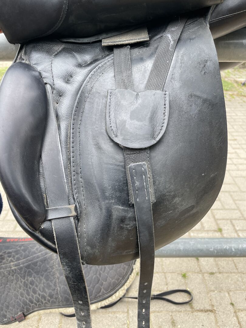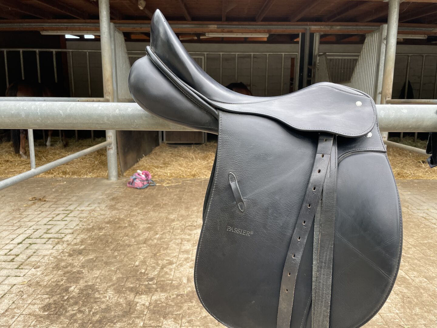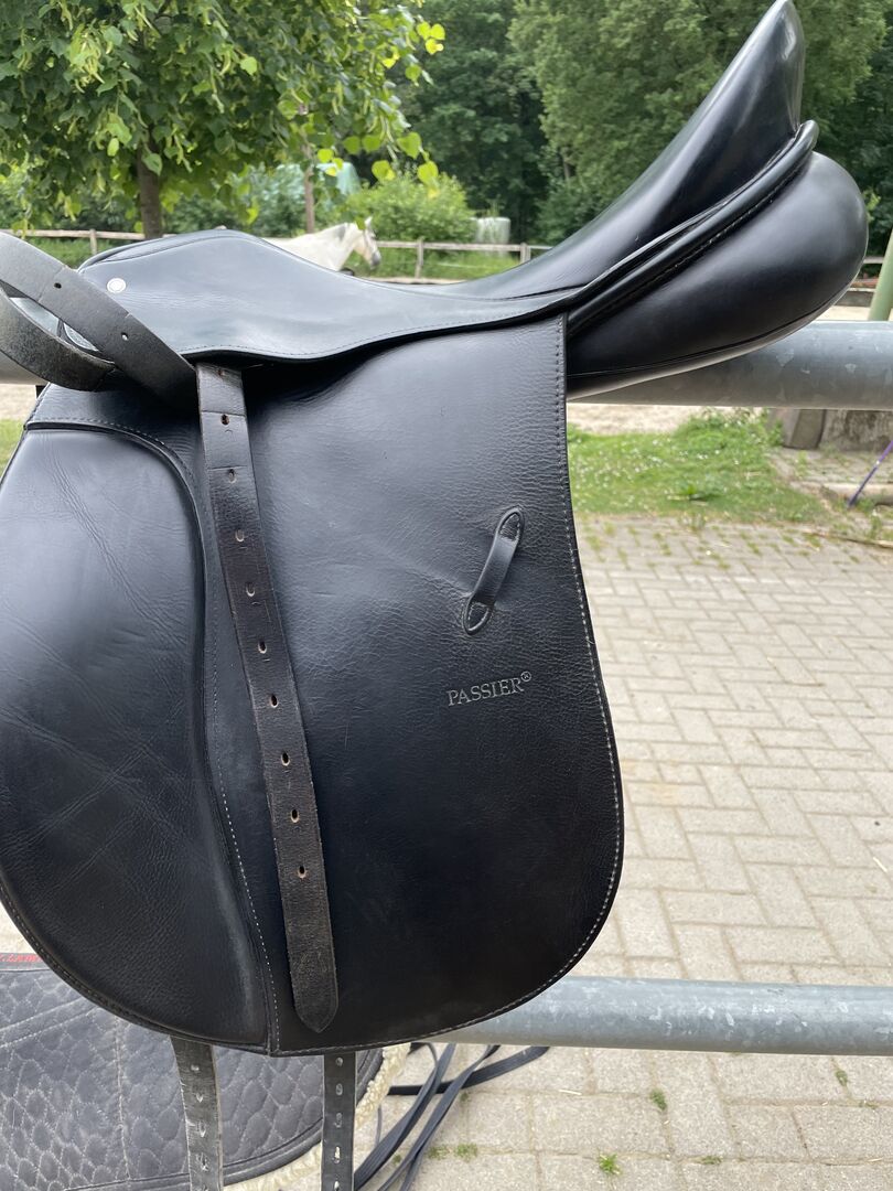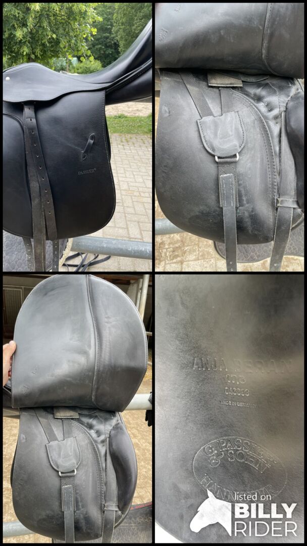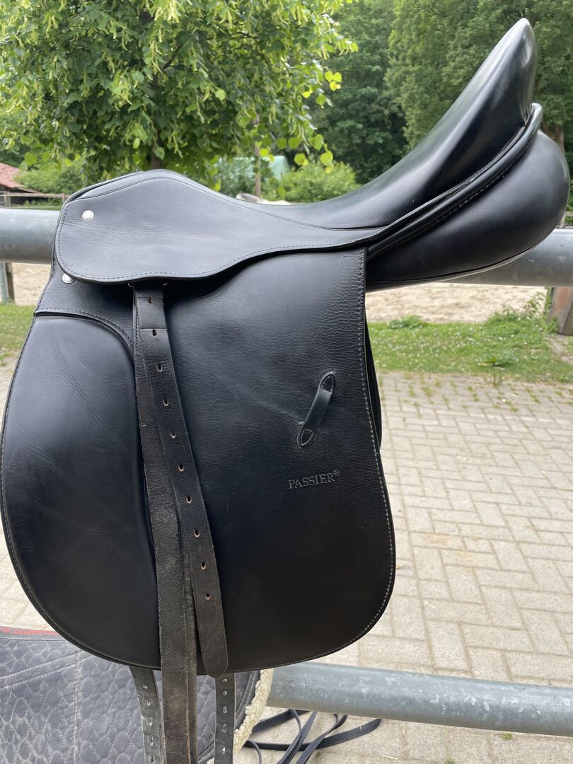 Dressuurzadel Passier - Verkoop van het dressuurzadel 'Anja Beran' van Passier. Hij is gemaakt van kalfsleer, dus je zit er heel stevig op. Het zadel werd gebruikt op een paard met een hoge schoft, de breedte van de slokdarm is ca. 18 cm. In de 2012 uitgave van "Mein Pferd" werd het zadel beschreven als een all-rounder. Het Passier-zadel, model "Anja Beran", bewees in de zes maanden durende test verrassend veelzijdig te zijn: "Het maakt niet uit of de ruiter rijbroeken of rijbroeken draagt, liever in de dressuurpiste of in de crosscountry rijdt - het zadel overtuigt in elke situatie". https://www.mein-pferd.de/x-import-von-alter-seite/equipment/der-alleskoenner__trashed/