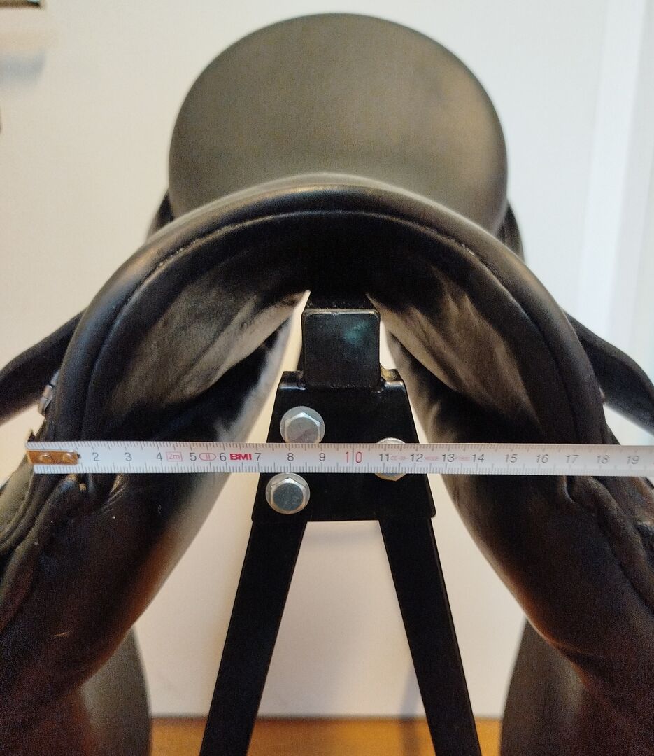 Het zadel is gemaakt in 2019 en lag op een warmbloed met een rechte rug en sterke schouders, daarom is de slokdarmplaat iets verbreed. Het kan echter heel goed op maat gemaakt worden.