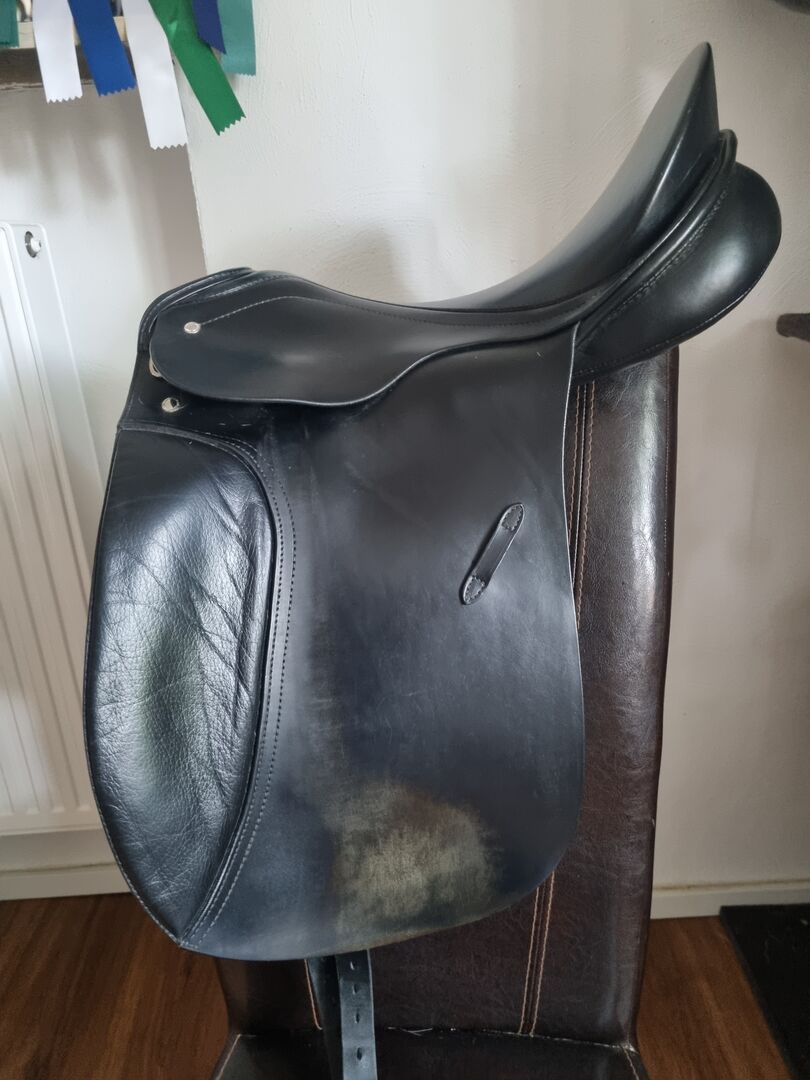 Dressuurzadel Passier Lennox - Ik verkoop mijn geliefde dressuurzadel Passier Model Lennox 16,5 inch Past goed bij maat 36 Medium diepe zitting Met speciaal gemaakte Velcro flap (van zadelmaker) niet standaard Regelmatig gecontroleerd door zadelmaker Geen knopen of gebreken Bovenkant van de bekleding. Normale gebruikssporen Prijs is VB Vandaag door de zadelmaker bekeken. Altijd top verzorgd en droog gehouden met bescherming in zadelkamer.