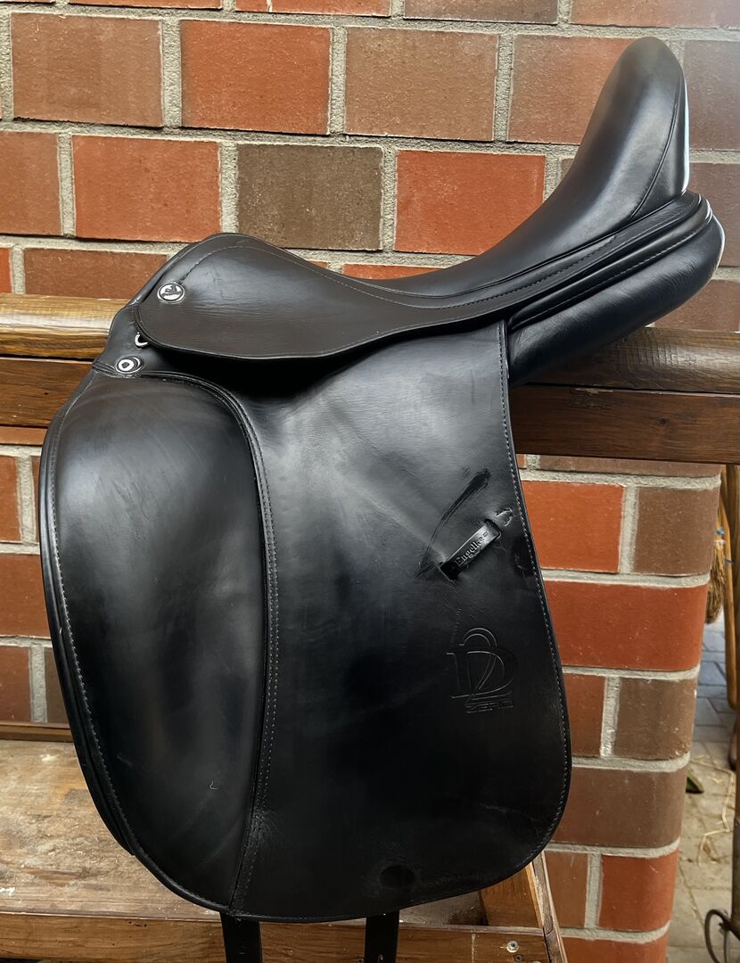 Dressuurzadel Prestige D2 Zerro D in zwart - Presige dressuurzadel D 2 Zero D, zitmaat M, heeft een klein schaafwondje aan de rechterkant. Zeer comfortabel. Klittenband pommels