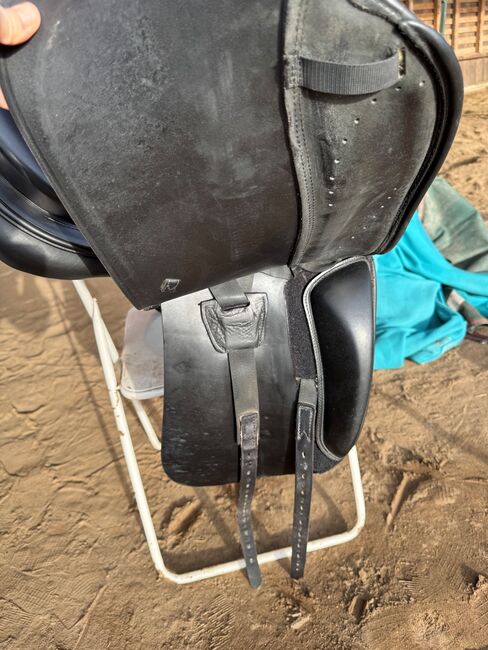 Het zadel biedt een uitstekende pasvorm, hoog comfort en optimale ondersteuning voor paard en ruiter. Ideaal voor dressuurruiters die waarde hechten aan kwaliteit en comfort. Het zadel heeft klittenbandpanelen. Ik kocht het nieuw in 2022 en het heeft in totaal ongeveer 6 maanden op mijn paard gelegen. De stijgbeugelriemen werden bijna uitsluitend onder de zadelklep bevestigd. Het zadel is altijd op een droge plek bewaard en regelmatig onderhouden. De vlekken aan de onderkant zijn het gevolg van het feit dat het zadel op een Acavllo gelpad lag, omdat het een aantal weken op een zadeldek heeft gelegen. Ik verkoop het met pijn in het hart omdat het niet op mijn nieuwe paard past. Ik kan meer foto's sturen als dat nodig is.