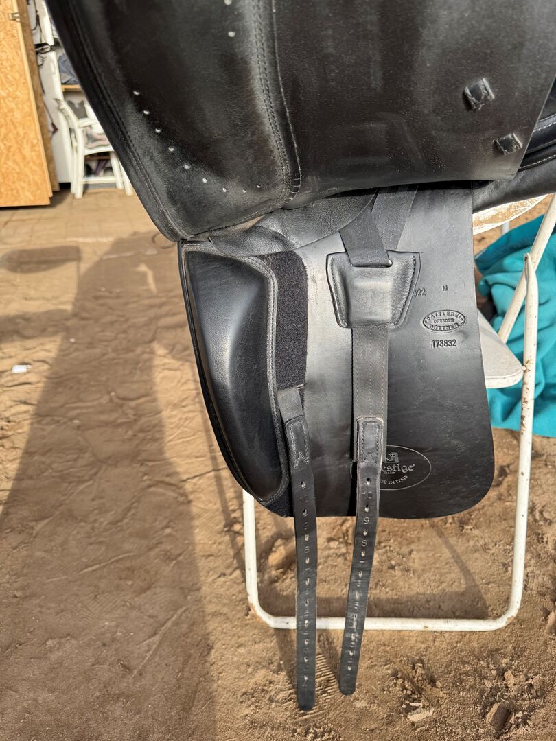 Dressuurzadel Prestige / Euroriding Emilio - Te koop is een Euroriding Prestige Emilio dressuurzadel met lichte gebruikssporen.