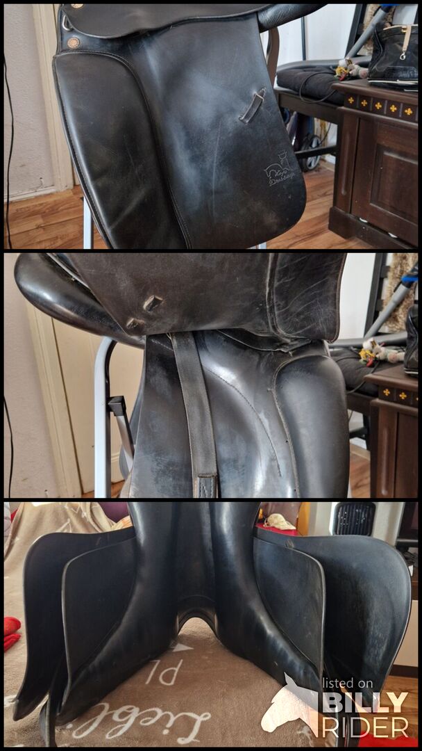 Dressuurzadel Prestige Top Dressage KW 34 - DRINGEND!!! Ik verkoop mijn zeer goed onderhouden Prestige dressuurzadel, model 'Top Dressage'. Het is net nagekeken door de zadelmaker en is in goede staat, maar past helaas niet meer op mijn merrie. Het zadel is super comfortabel en zit heerlijk. De slokdarmbreedte is 34, maar dit kan ook aangepast worden door de zadelmaker. Het zadel lag op een slanke Oldenburger merrie. Zitmaat: 17 inch. Als je geïnteresseerd bent, kan ik ook een zwart lamsvel onderlegger van Harry's Horse en een zadelhoes van Prestige leveren voor 40 euro. Het dekje is een jaar oud en nog lekker zacht.