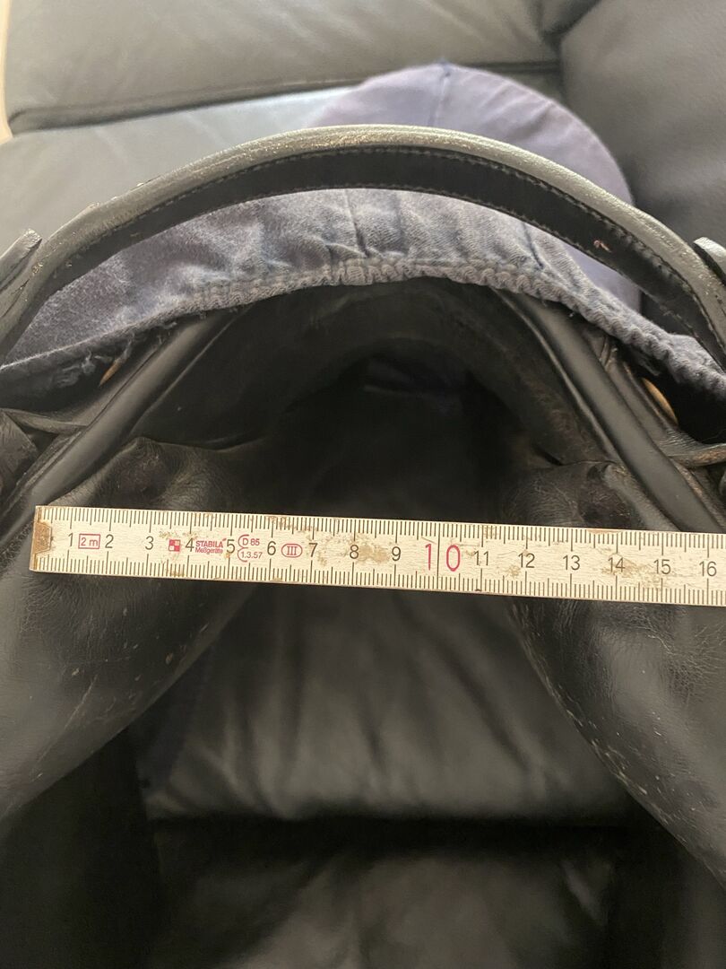 De kamer is 32 met een 17 inch zit, hij zat op een Duitse rijpony met een sterke schouder en brede schoft. Zeer geschikt voor paarden met een korte rug, dankzij het korte contactoppervlak en de panelen die naar boven toe taps toelopen.