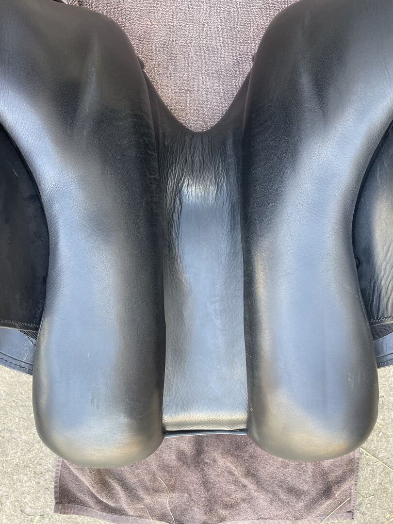 Ik gebruikte het zadel op een korte, sterke Hannoveraan. Volgens Schleese heeft het een onafhankelijk ½ paneel met schoudervrijheid en een geïntegreerd 5-punts singelsysteem. Voor de ruiter heeft het zadel een smalle zit, een gemiddelde tot ondiepe zitdiepte en het zwaartepunt ligt in het midden. Klittenband maakt individuele aanpassing aan de ruiter mogelijk. Ik heb me altijd heel prettig gevoeld in het zadel; het is echt super comfortabel.