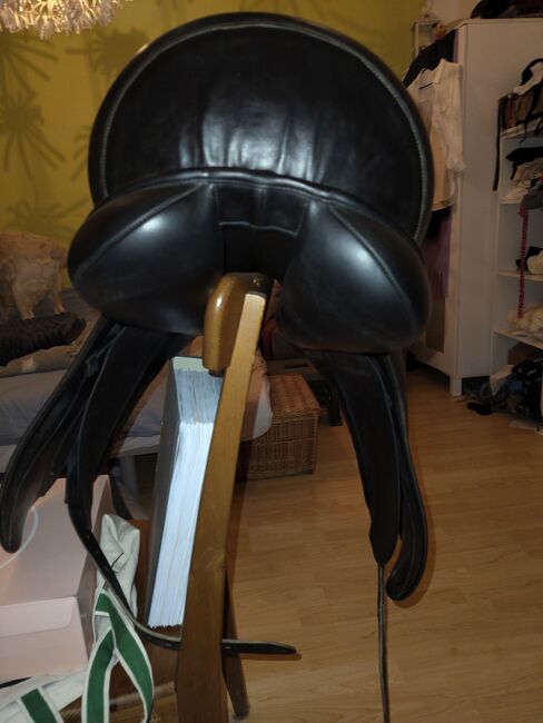Dressuurzadel Seabis Catagena 17,5 inch - Het zadel is altijd met zorg behandeld en vertoont alleen de gebruikelijke gebruikssporen. Het zit zeer comfortabel en is geschikt voor gebogen, middelbrede paardenruggen.