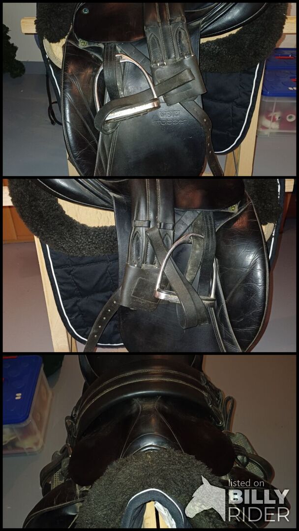 Dressuurzadel Stübben Skandika 17 inch breedte 29 - Ik verkoop mijn dressuurzadel van Stübben. Het is zwart, gebruikt en in goede staat met de gebruikelijke gebruikssporen. Ik heb het ongeveer 20 jaar normaal gebruikt en slechts op één paard gemonteerd. Gedurende ongeveer 4 jaar heb ik het alleen gebruikt voor cross-country rijden. Nadat mijn paard van ongeveer 3 jaar stierf, stond het afgedekt in de kelder. Ik verkoop hem compleet met de accessoires die op de foto's te zien zijn. Dit is een particuliere verkoop zonder garantie.