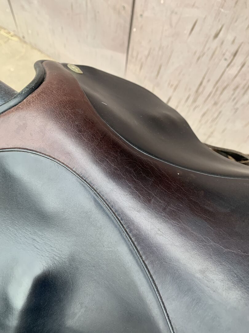 Dressuurzadel Summer Passion donkerbruin - Ik verkoop mijn Sommer Passion dressuurzadel omdat de spieren van mijn merrie helaas zo veranderd zijn dat het niet meer perfect past. De breedte van de slokdarm is 31,5, de zitting is 17,5 en het wervelkanaal is breed. Het zadel is donkerbruin en heeft een kleurverloop op het zadeloppervlak en het hoofdstel. Geen gaten. Gebruikelijke slijtage aan de stijgbeugelriemen. Op het zadeloppervlak bij de naad schuurt het leer een beetje. Geen scheuren. Het zadel is 2 keer per jaar nagekeken en is 2 jaar geleden volledig opnieuw bekleed. Singelbanden zijn nog in perfecte staat. Koud verstelbare ijzers. Als je interesse hebt in het gebied, kan het getest worden voor een aanbetaling. Zonder stijgbeugels en riemen.