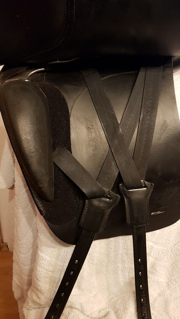 Dressuurzadel Vlinder Kostolany Dt Zadelmakerij - Ik bied mijn Kostolany aan, maat 18 inch, zwart, met het typische vlinderscharniersysteem en brugijzers in plaats van een normaal kopijzer, dat mijn paard helaas niet meer past. Helaas zit er een krasje op de zadelrand (zie foto), verder in zeer goede staat, zie foto's voor afmetingen. Verzending mogelijk, contant bij afhalen of PayPal, passen mogelijk tegen aanbetaling van de koopprijs. Locatie is 56766 Auderath, niet Horperath... helaas kan ik dat niet veranderen op de een of andere manier ....