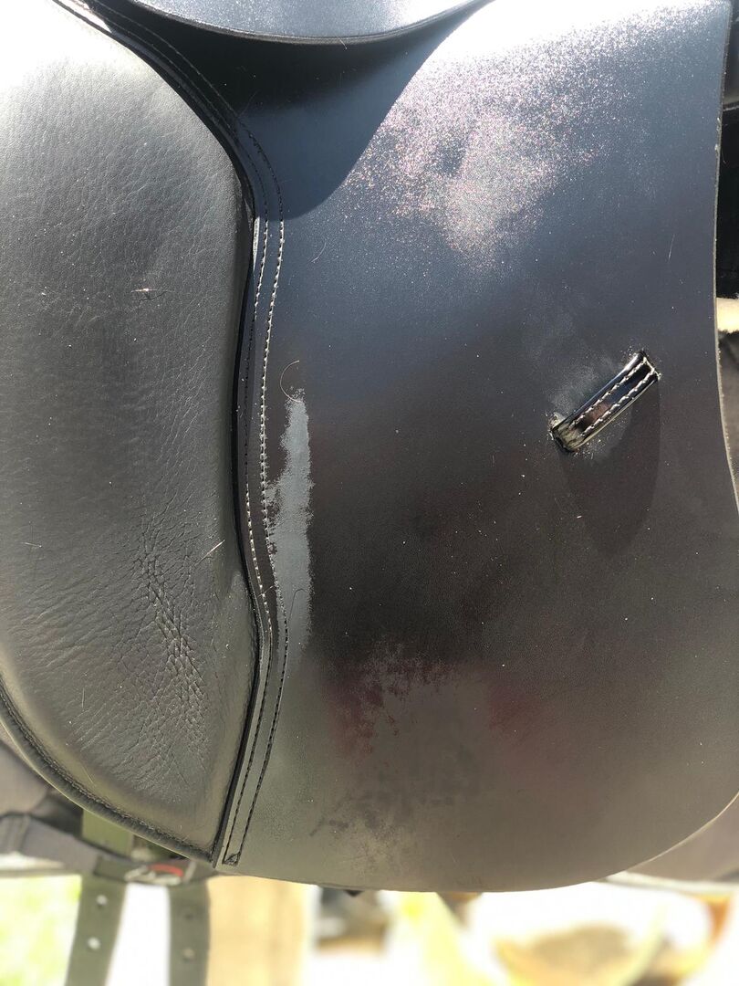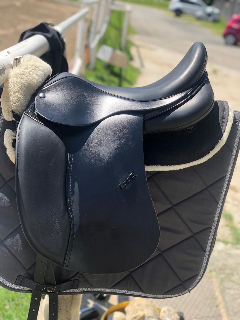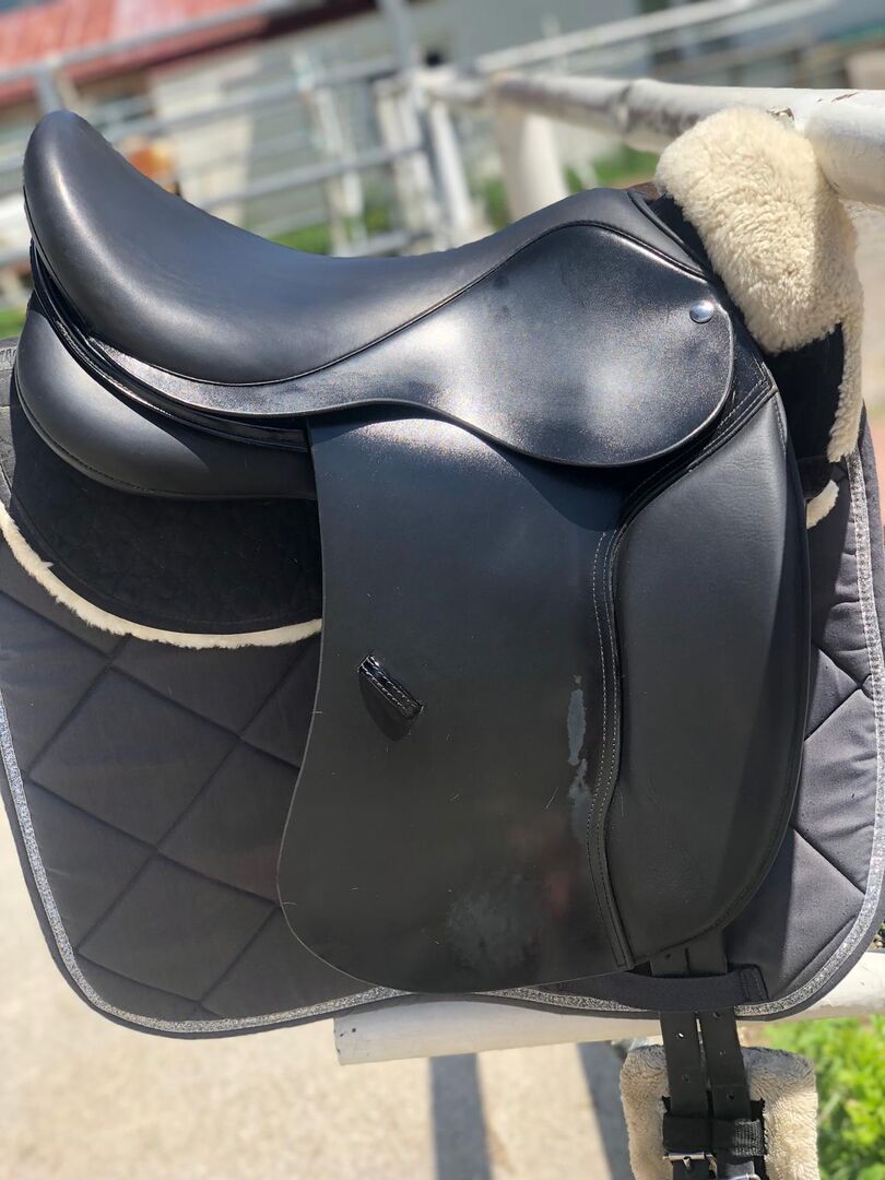 Dressuurzadel Zadelmakerij Preiss zo goed als nieuw - Dressuurzadel in perfecte staat van de Preiss zadelmakerij. Lichte gebruikssporen door beugelriemen, verder in perfecte staat (gekocht op 01/22). Het zadel zat op een Arabische merrie met een korte rug. Een zadelmaker kan het zadel aanpassen.