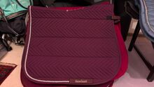 Dressuurzadeldekjes van verschillende merken in roodtinten - Te koop diverse dressuur zadeldekjes in wijnrood tot augergine. Bij interesse graag aangeven welk zadeldek. Geen retourzendingen, als particuliere verkoop